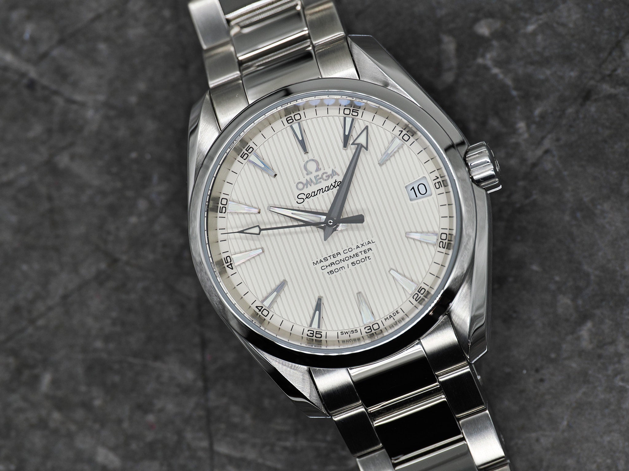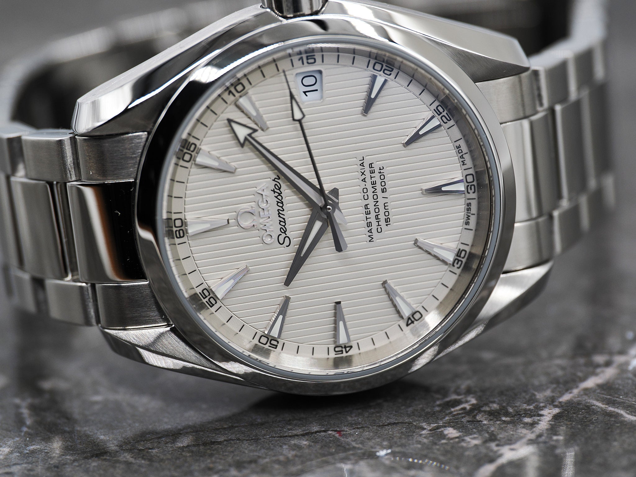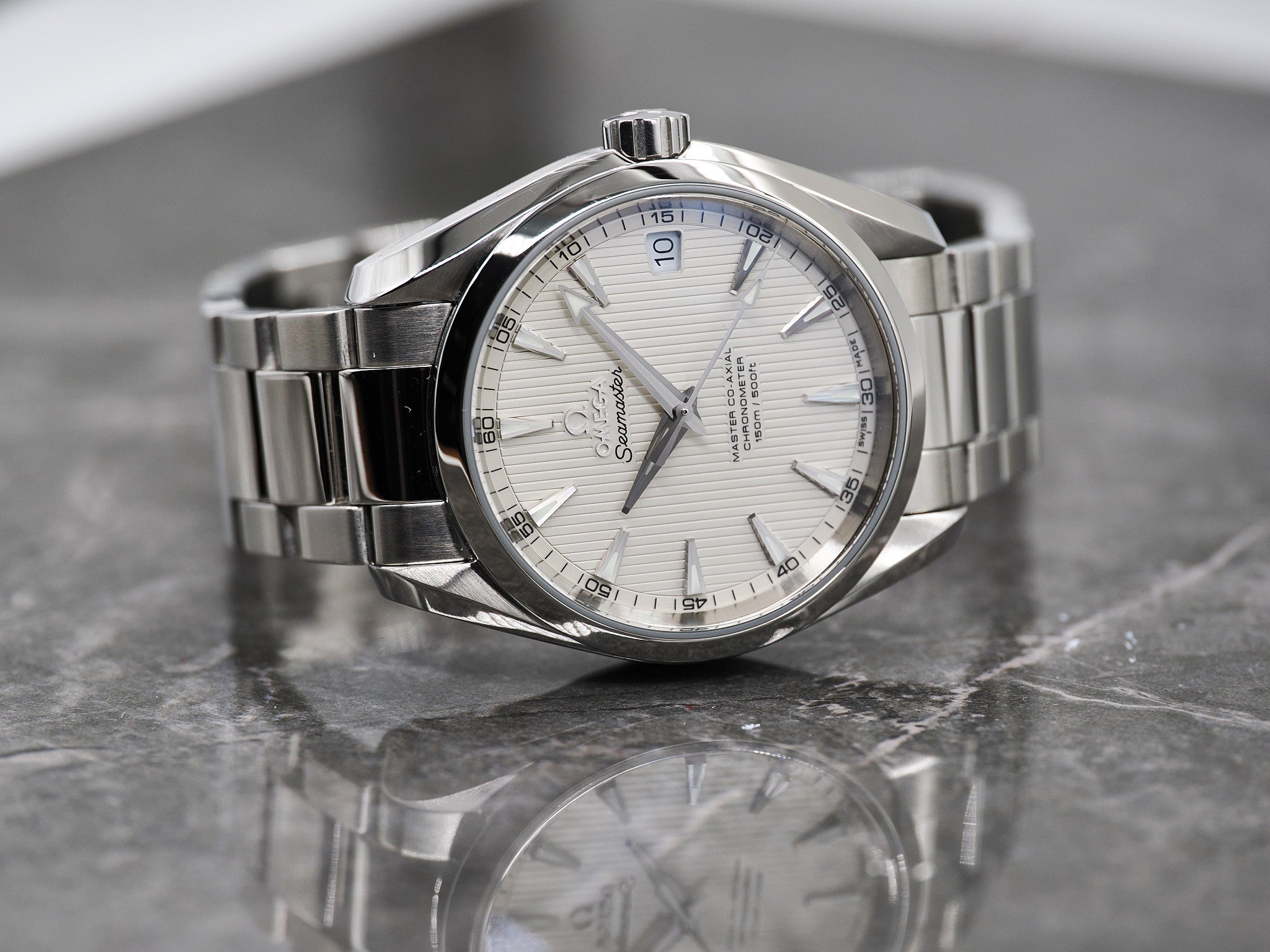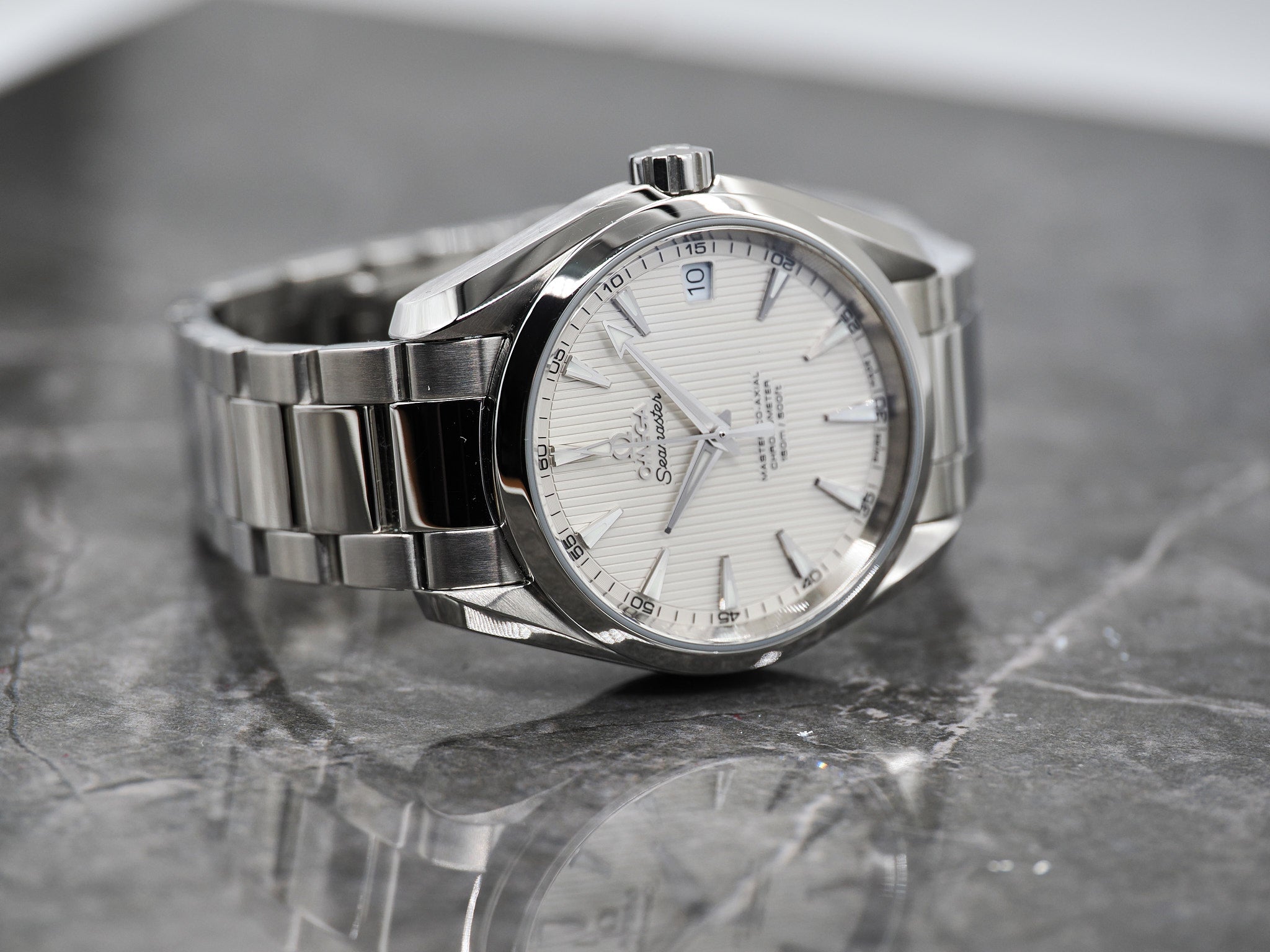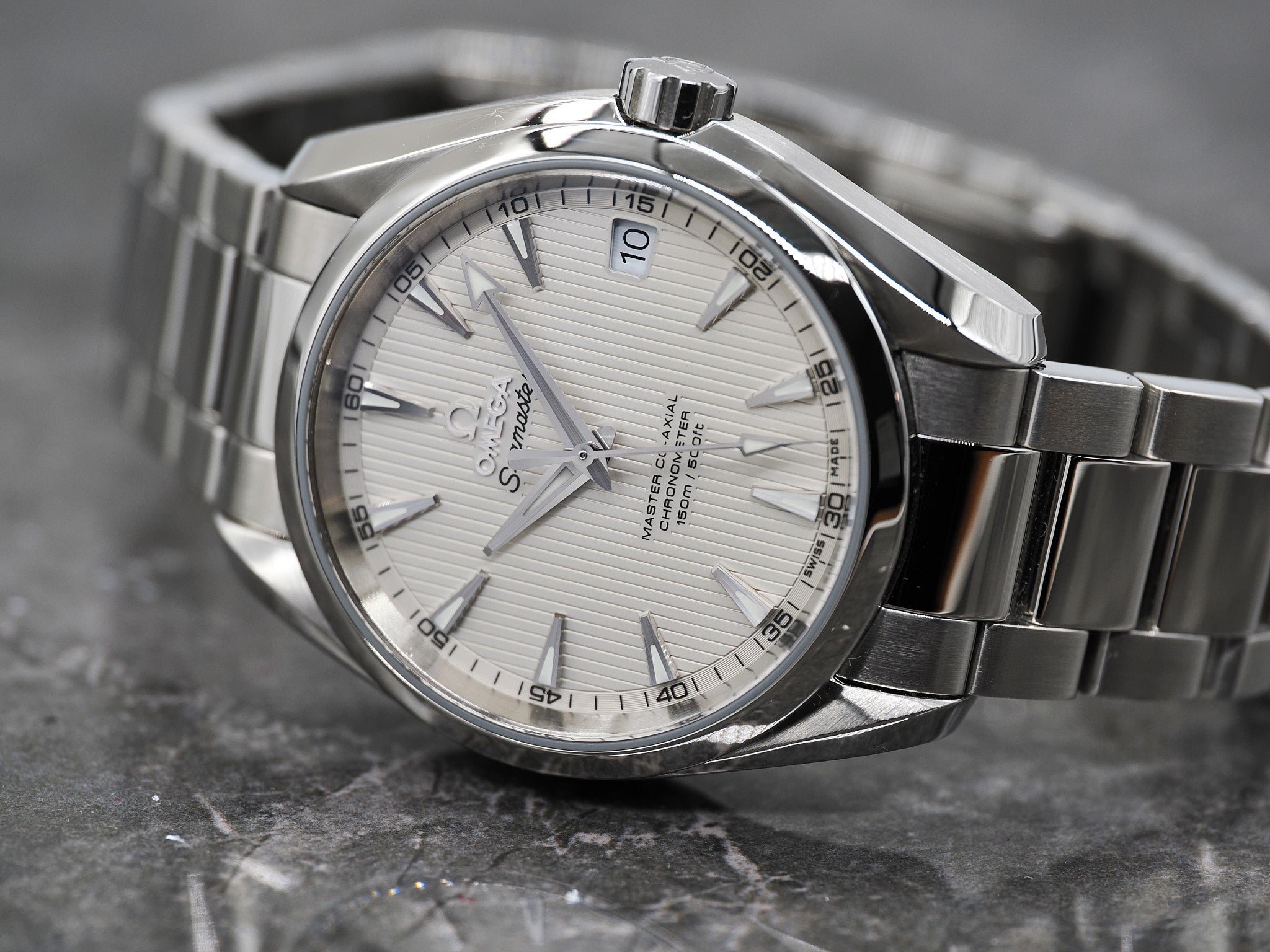 Omega Seamaster Aqua Terra 150M Ref. 231.10.39.21.02.002 mit weißen/silber Teak Zifferblatt.