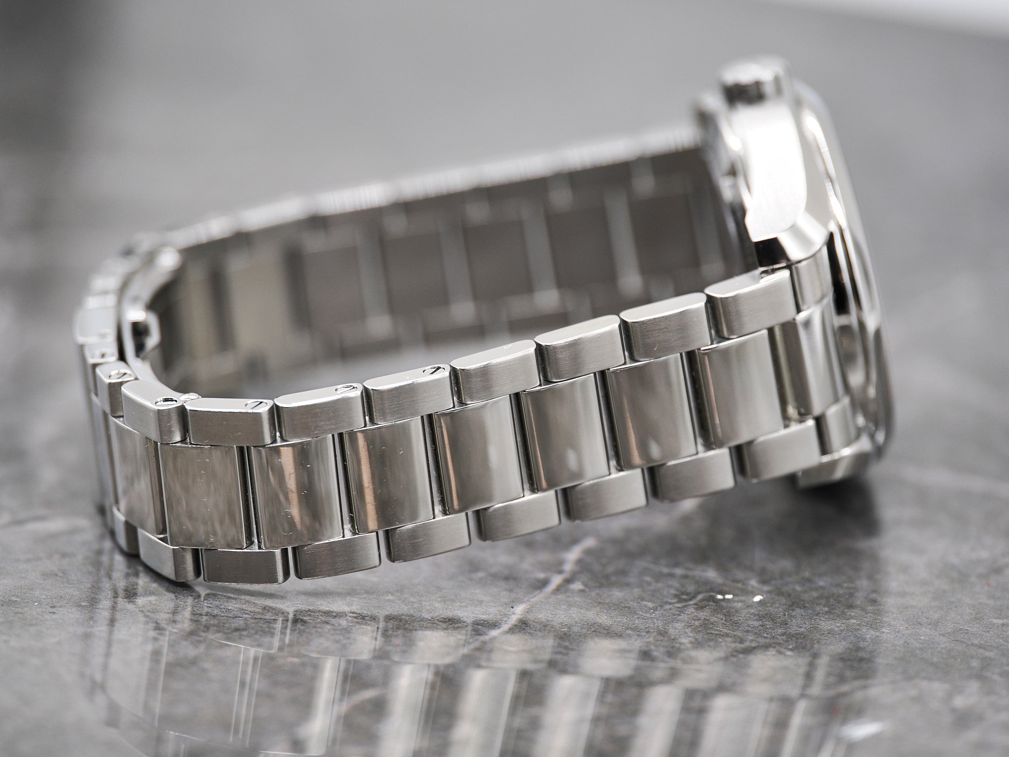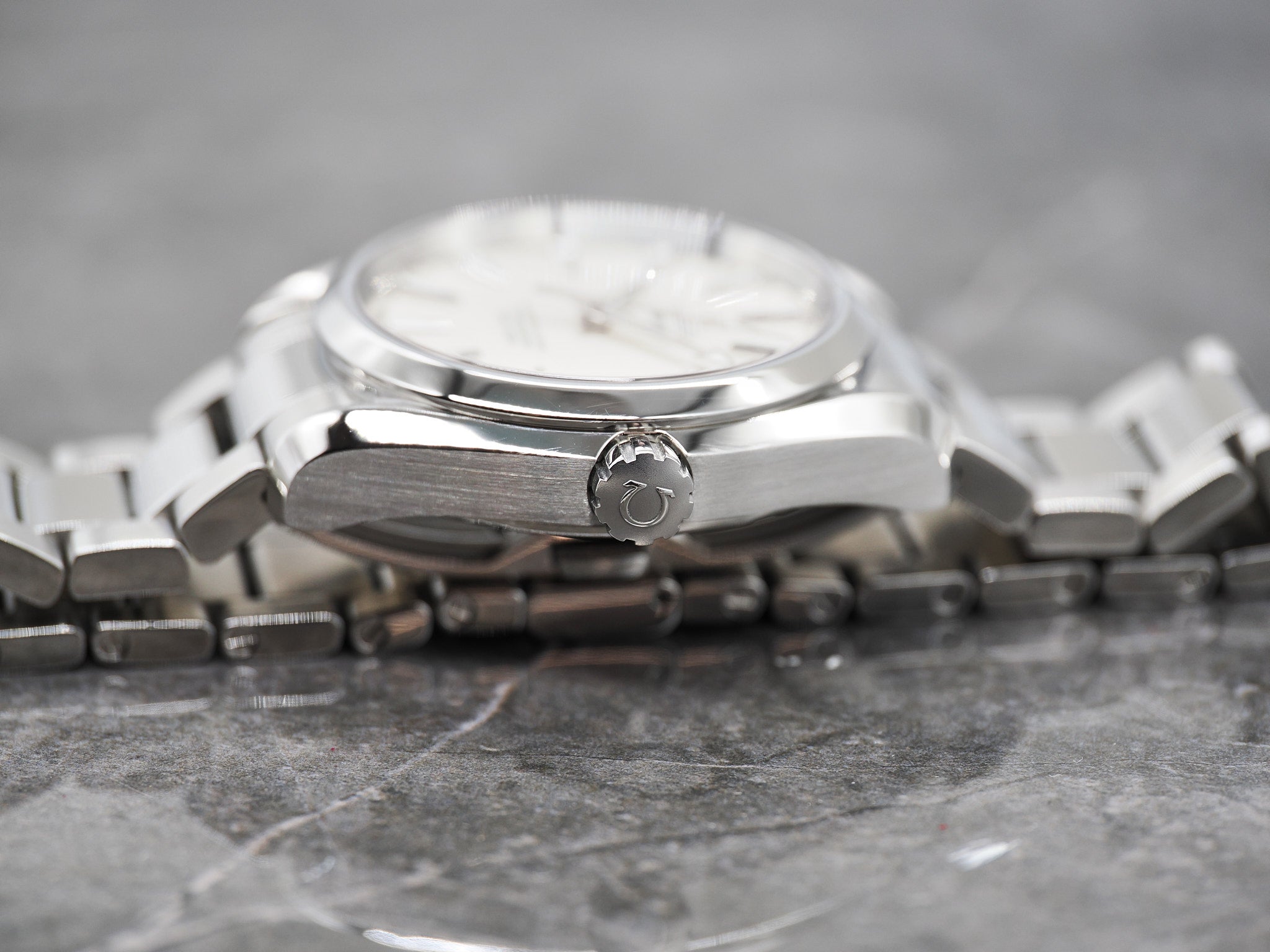 Der Durchmesser der Omega beträgt 38,5mm ohne Krone. Es sind alle Bandglieder vorhanden.