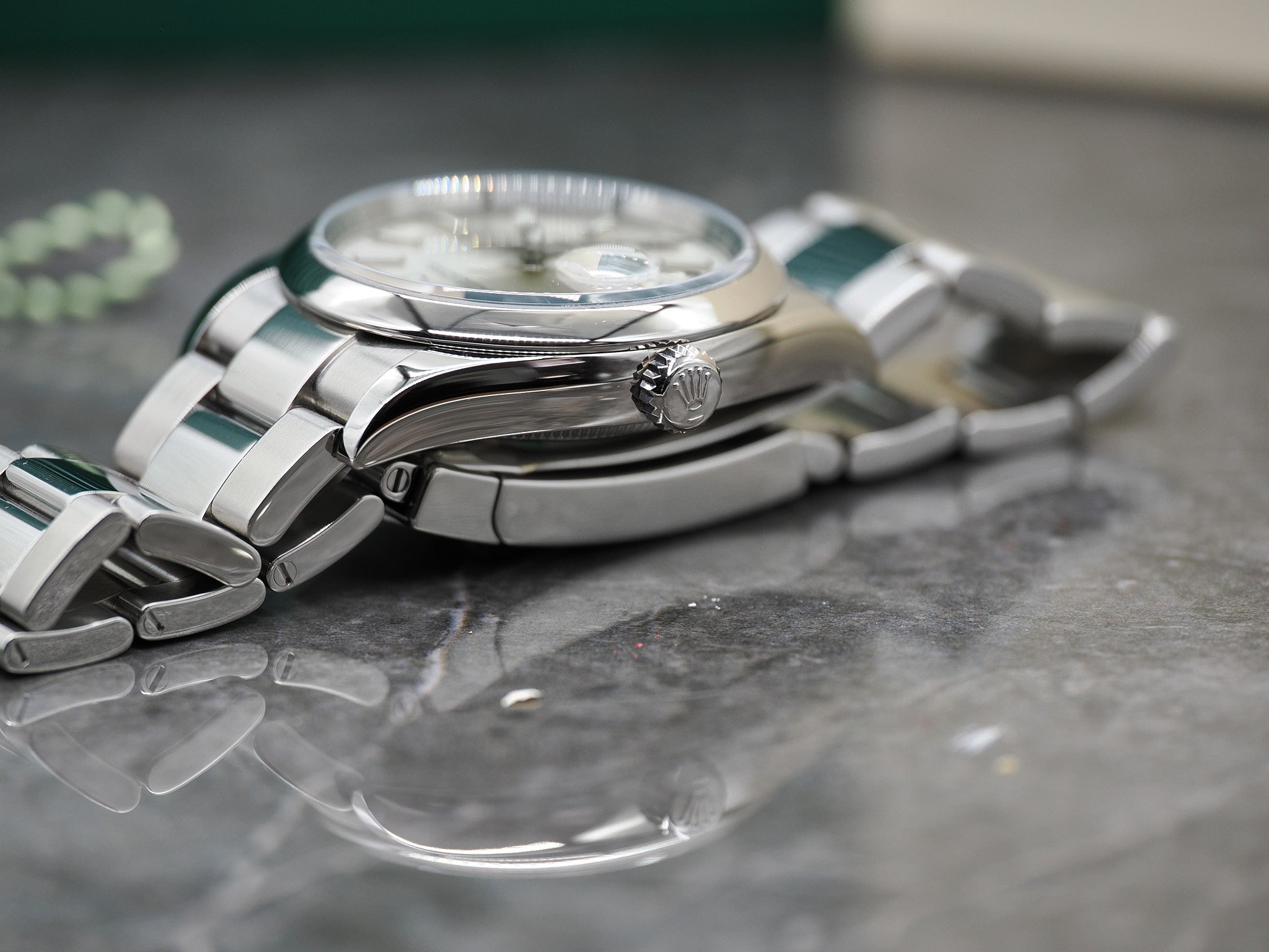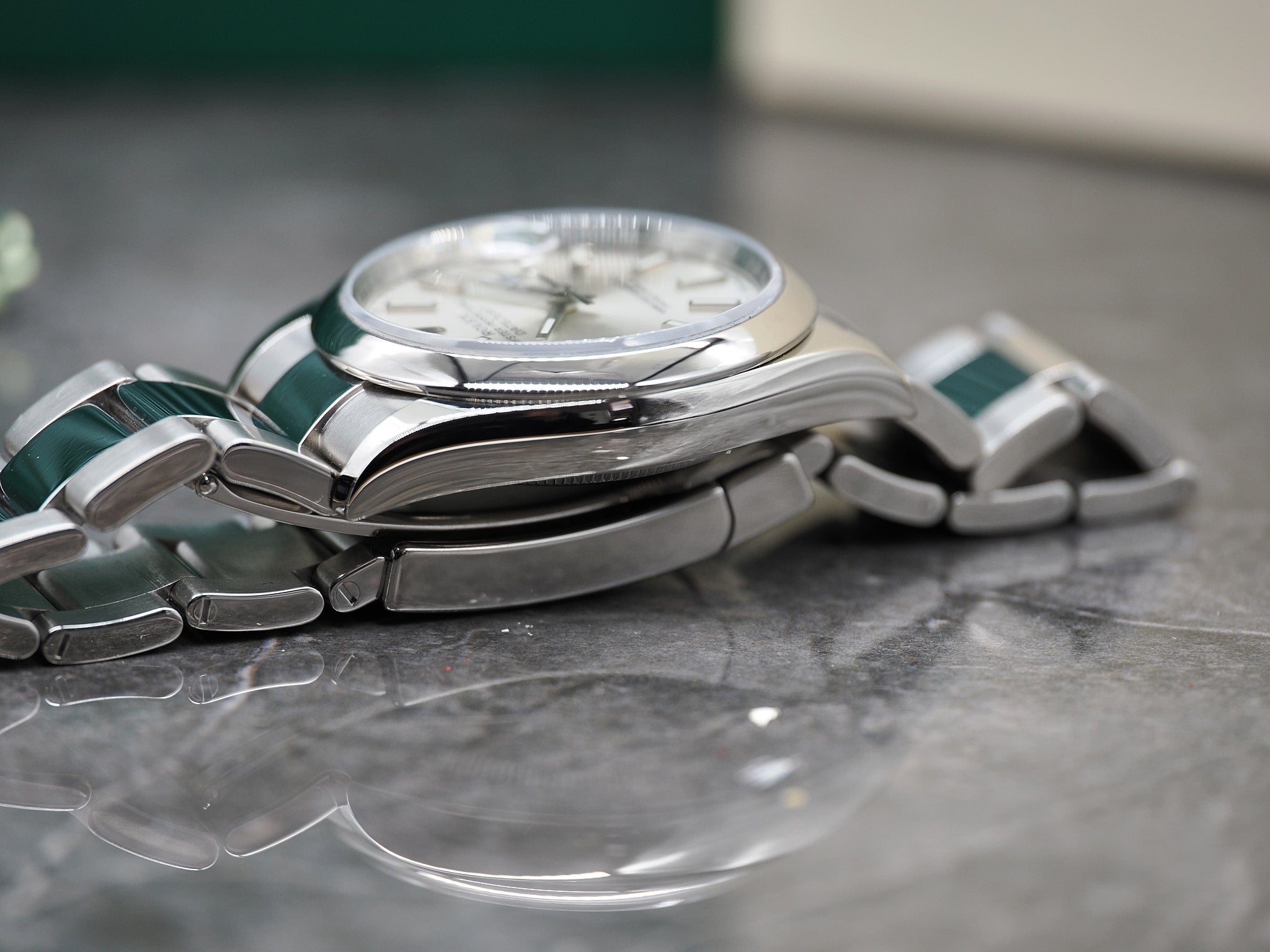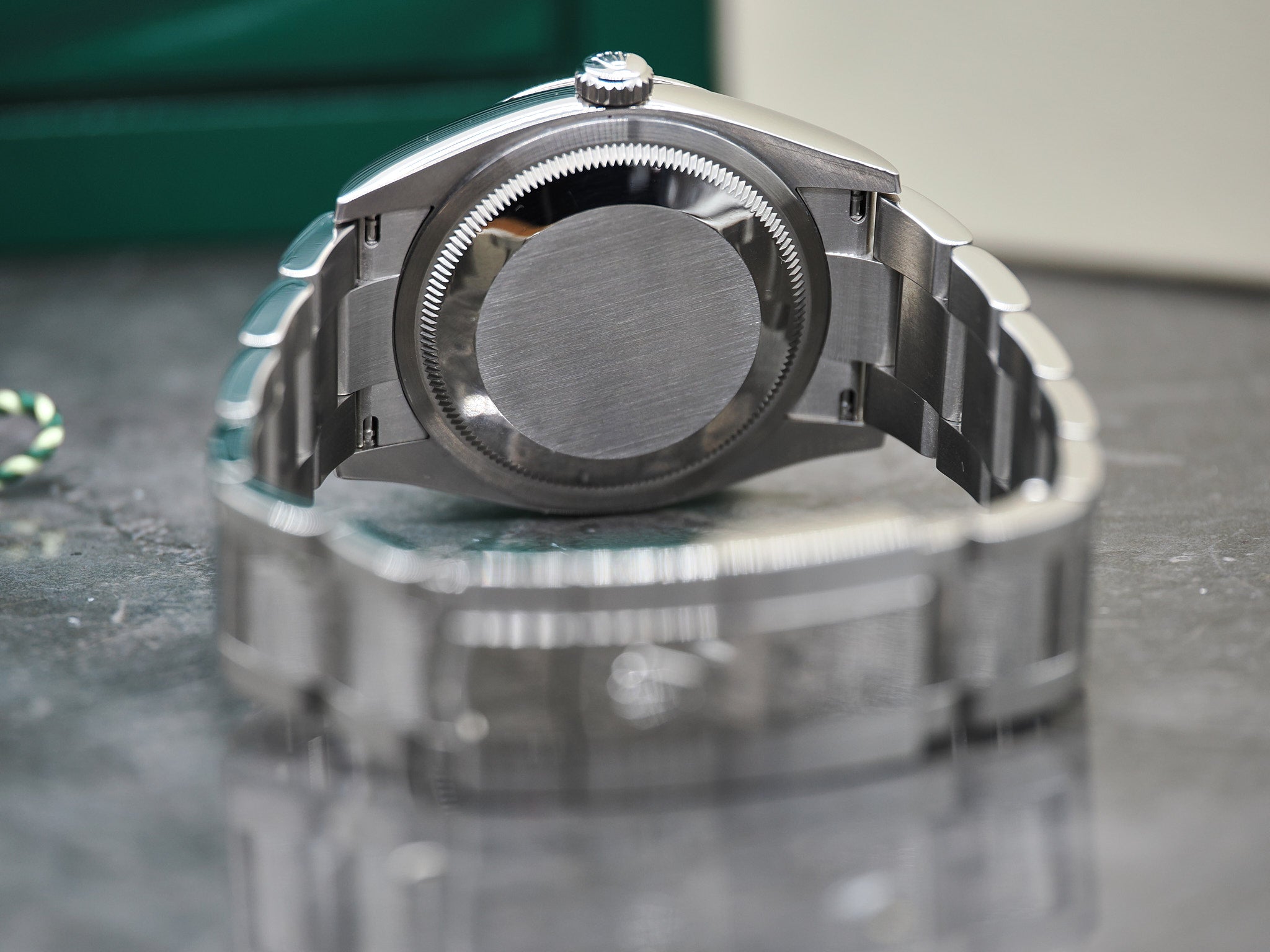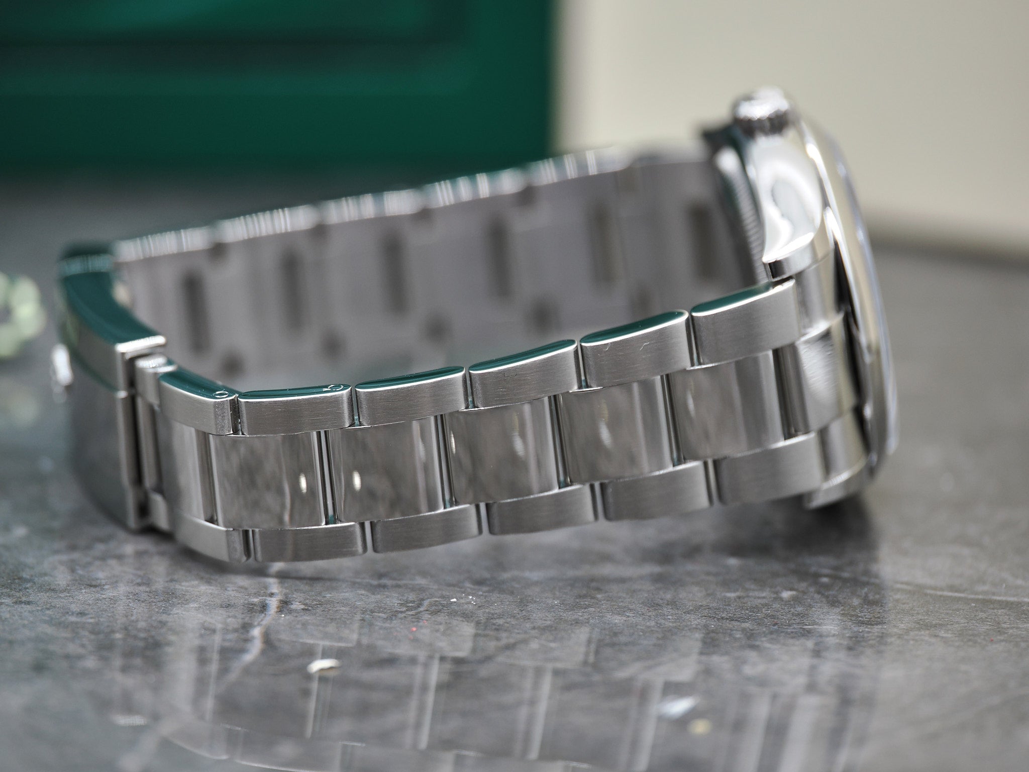 Der Durchmesser der Rolex beläuft sich auf 36mm. Alle Bandglieder sind vorhanden.