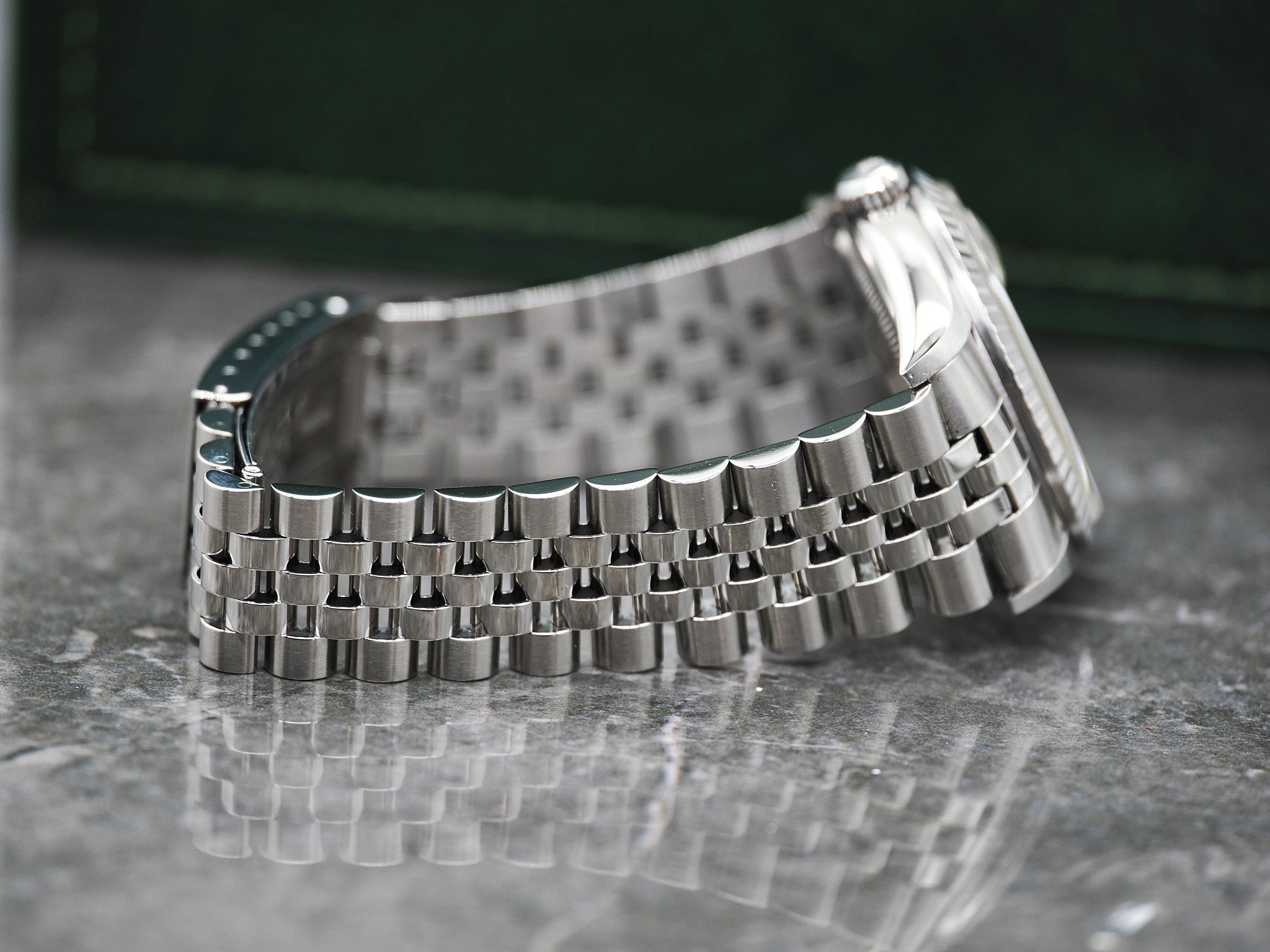 Optisch befindet sich die Datejust in einem sehr guten Zustand. Das Saphirglas ist kratzerfrei. Bitte nutzen Sie die hochauflösenden Bilder als Referenz der Zustandsbeschreibung.