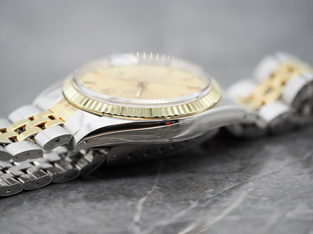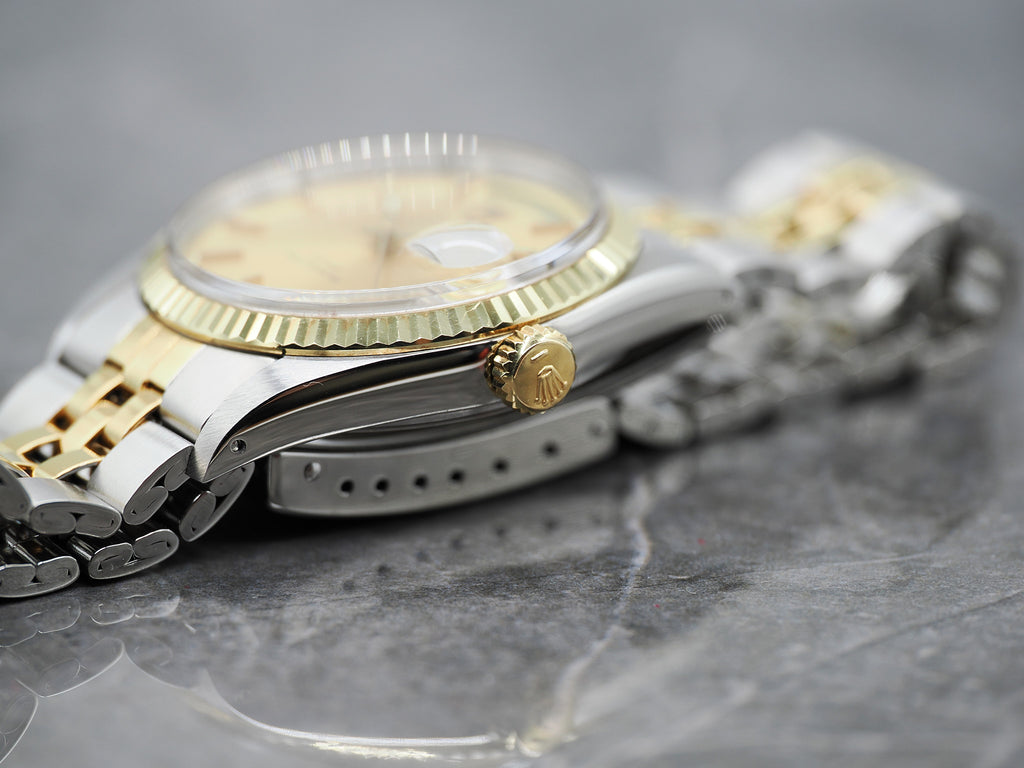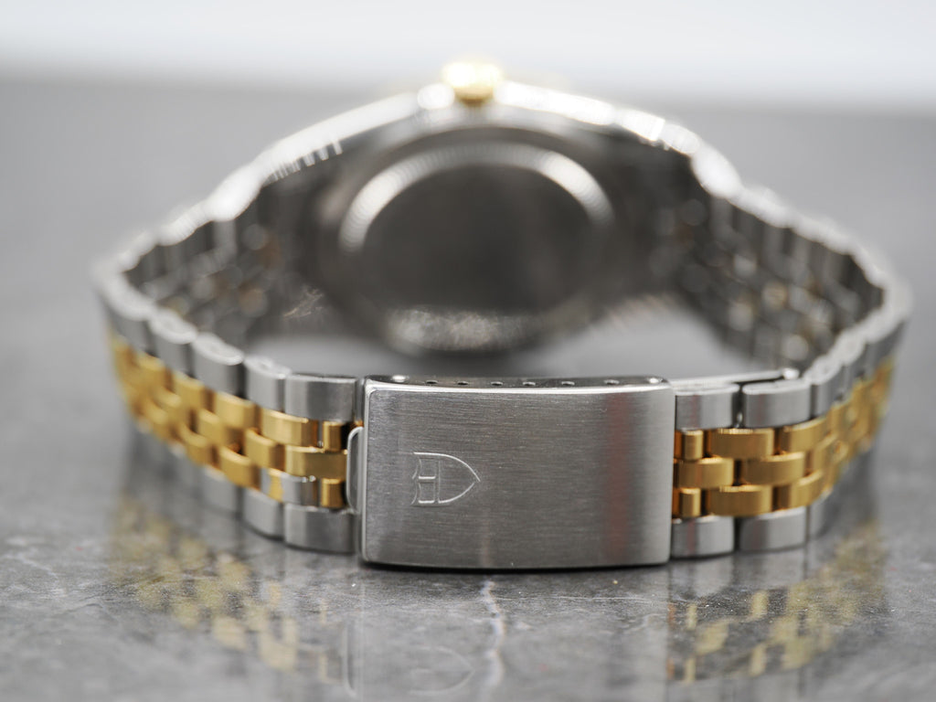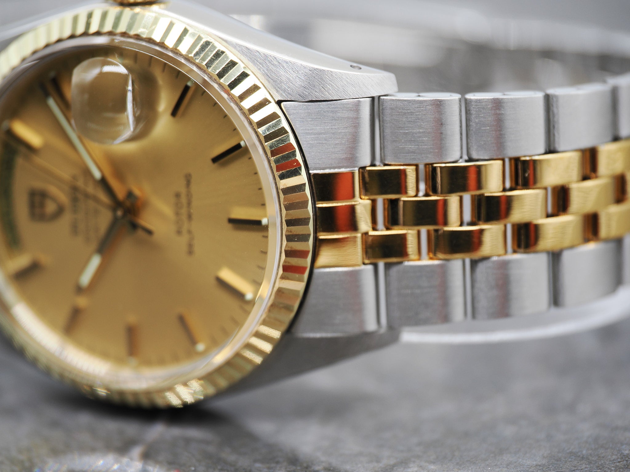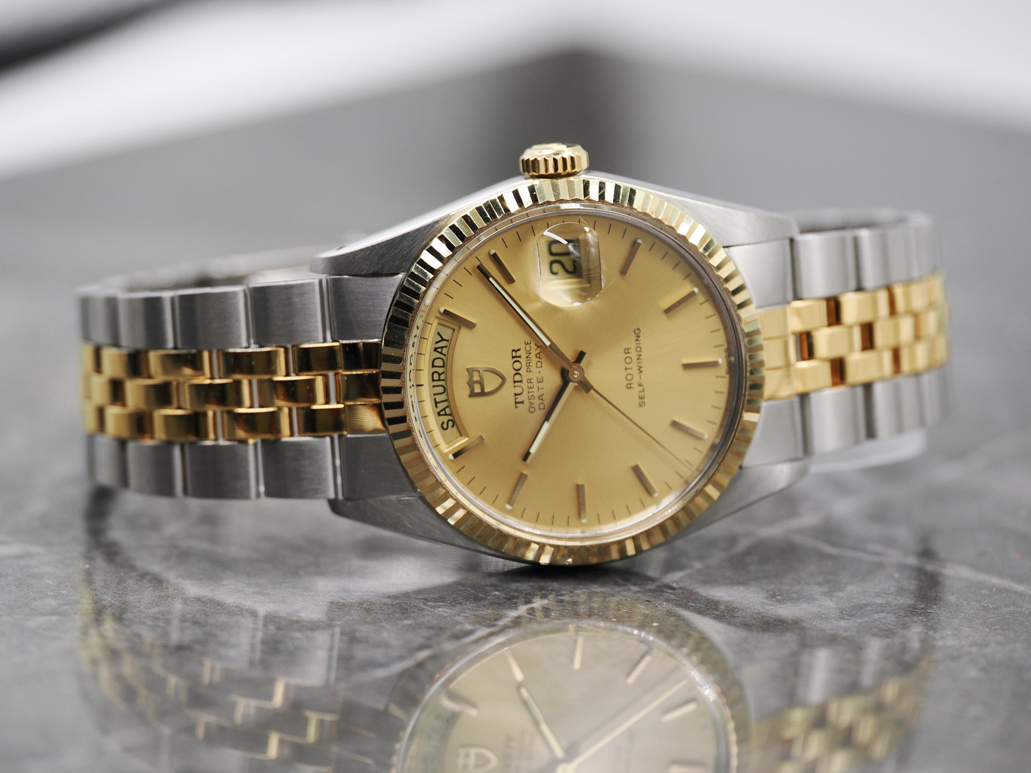 Tudor Oyster Prince Date Day - Referenz 94613 mit goldenen Zifferblatt und goldener Lünette.
