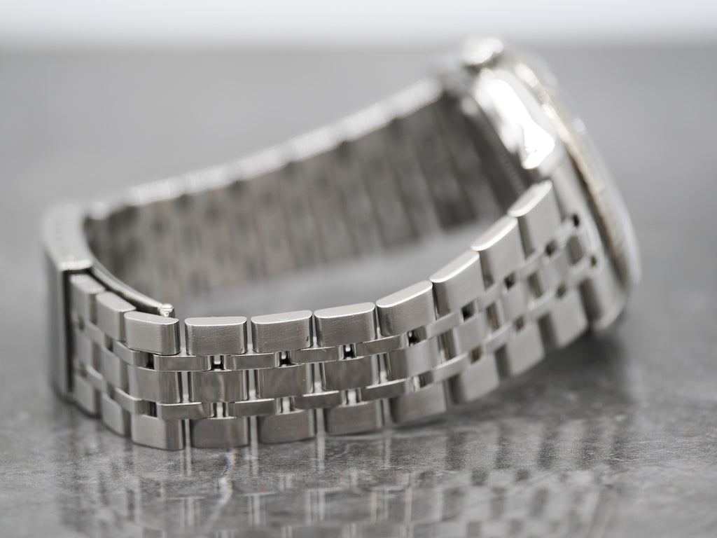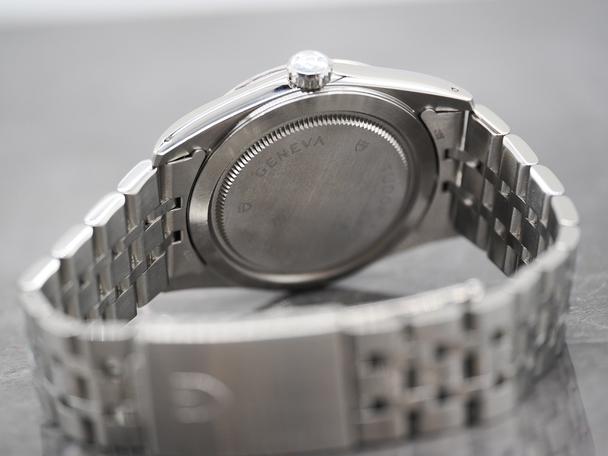 Die wunderschöne Tudor mit der Referenz 76214 ist der Nachfolger der Ref. 94614. Besonderheiten sind unteranderem das seltene weiße Zifferblatt mit römischen Indizes, die geriffelte Lünette aus Weißgold und die Day Date Komplikation. Die Referenz wurde, wie der Vorgänger, bereits eingestellt und wird nicht mehr gebaut. Kontinuierlich wächst die Nachfrage zu dem Rolex Day Date Pendant aus dem Hause Tudor. Der Gehäusedurchmesser beträgt ohne Krone ca. 36mm. Die Tudor passt bis zu einem Handgelenksumfang von ca. 20cm. Optisch befindet sich die Tudor in einem sehr guten Zustand. Das Saphirglas ist kratzerfrei. Bitte nutzen Sie die hochauflösenden Bilder als Referenz der Zustandsbeschreibung. Das Werk der Tudor funktioniert einwandfrei und es besteht kein Bedarf für einen Service. Sie erhalten ein Jahr Garantie auf das Werk ab dem Kaufdatum. Das Set inkludiert: Die originale Tudor Prince Date Day, Garantiekarte (10.2016), Hangtag, Nachweis Wasserdichtigkeit (10 Bar) und Gangabweichung (1.3s/d). Händlerrechnung Zu diesem Artikel wird Ihnen selbstverständlich eine Händlerrechnung ausgestellt. Mehrwertsteuer Der Artikel wird nach § 25 A USTG (Differenzbesteuerung) besteuert. |