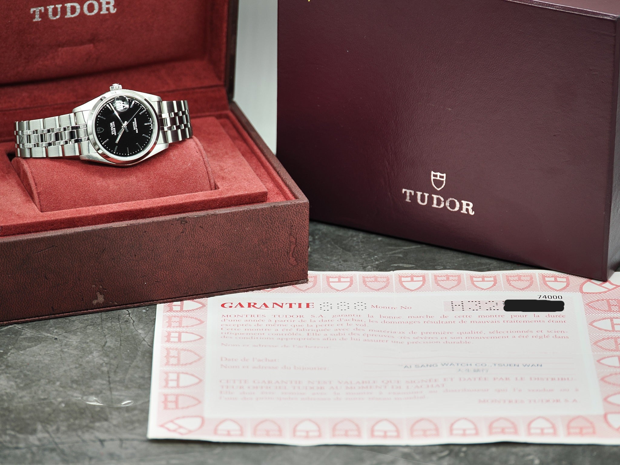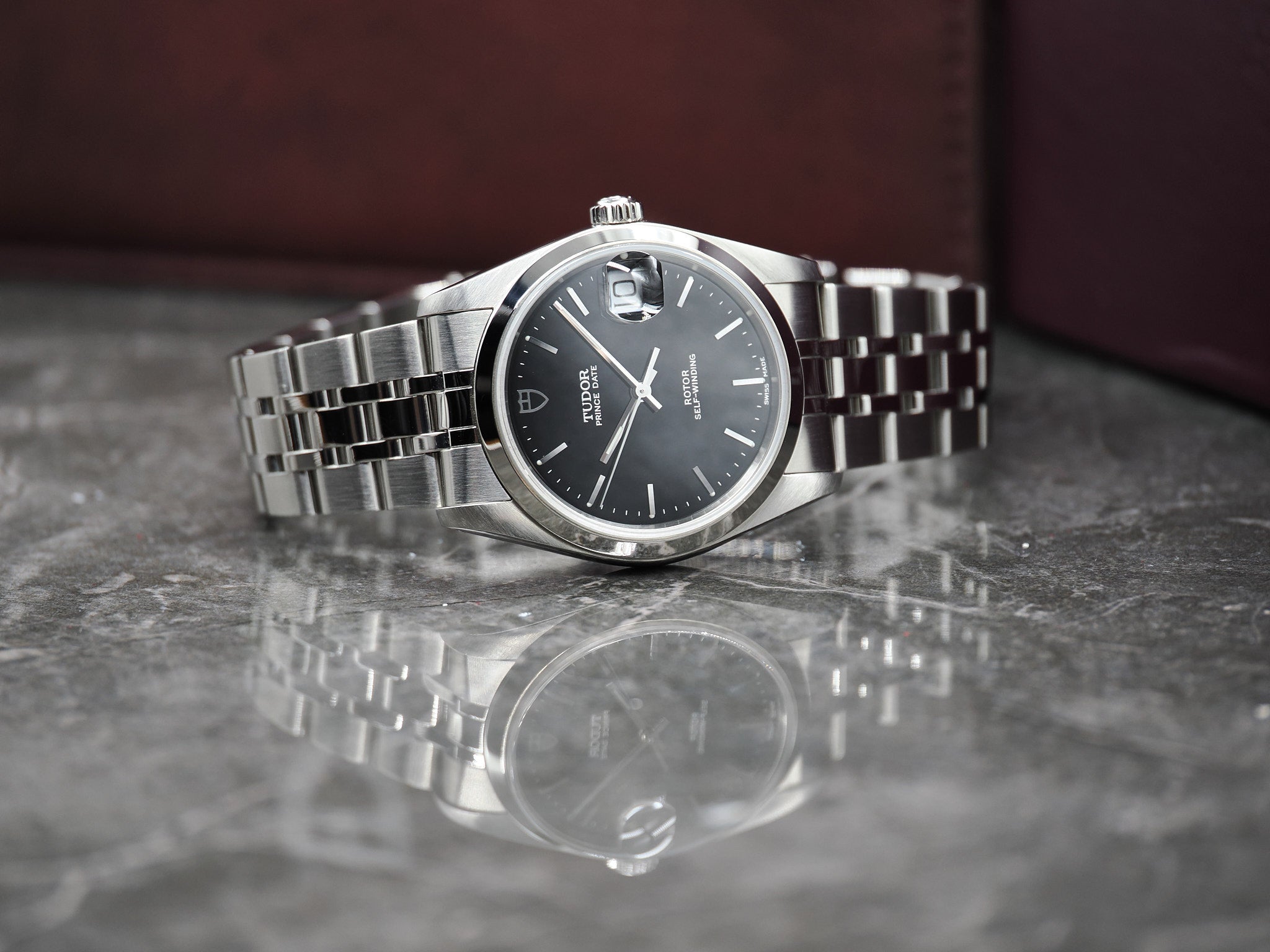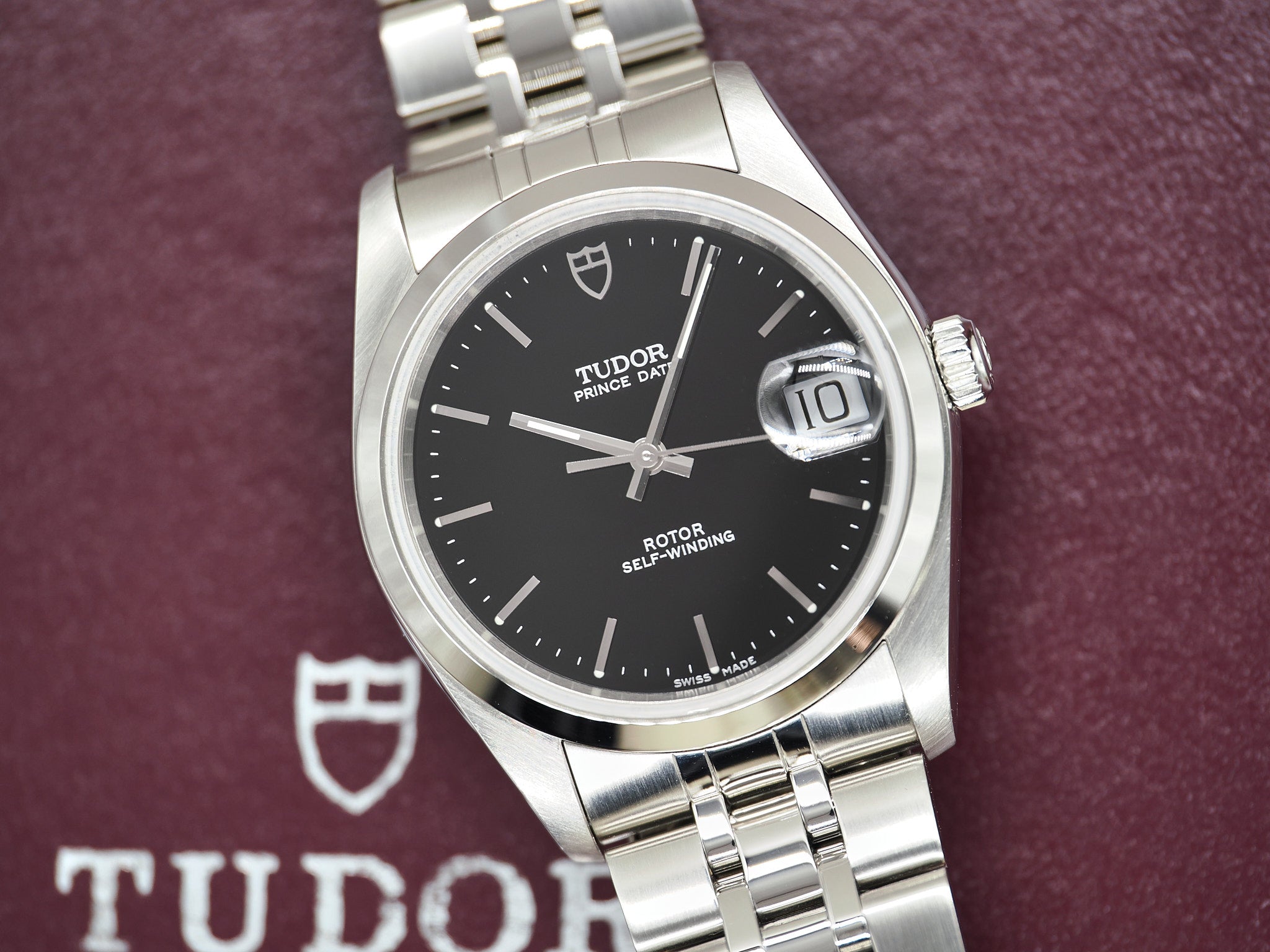 Tudor Prince Date Ref. 74000N mit schwarzem Zifferblatt mit Box und Papieren.