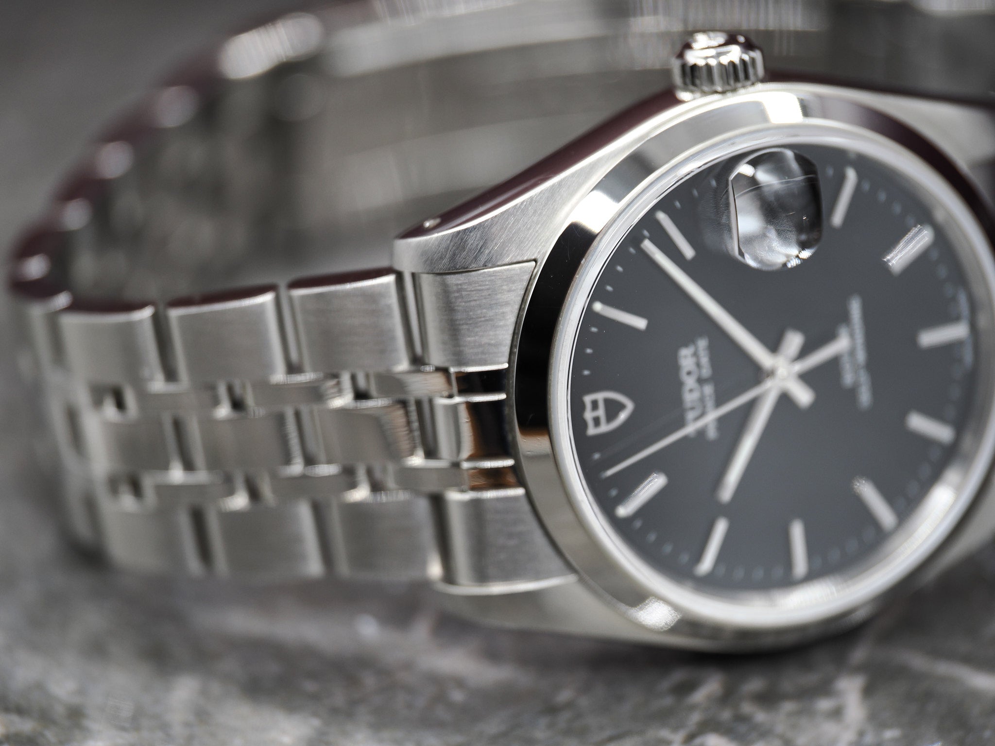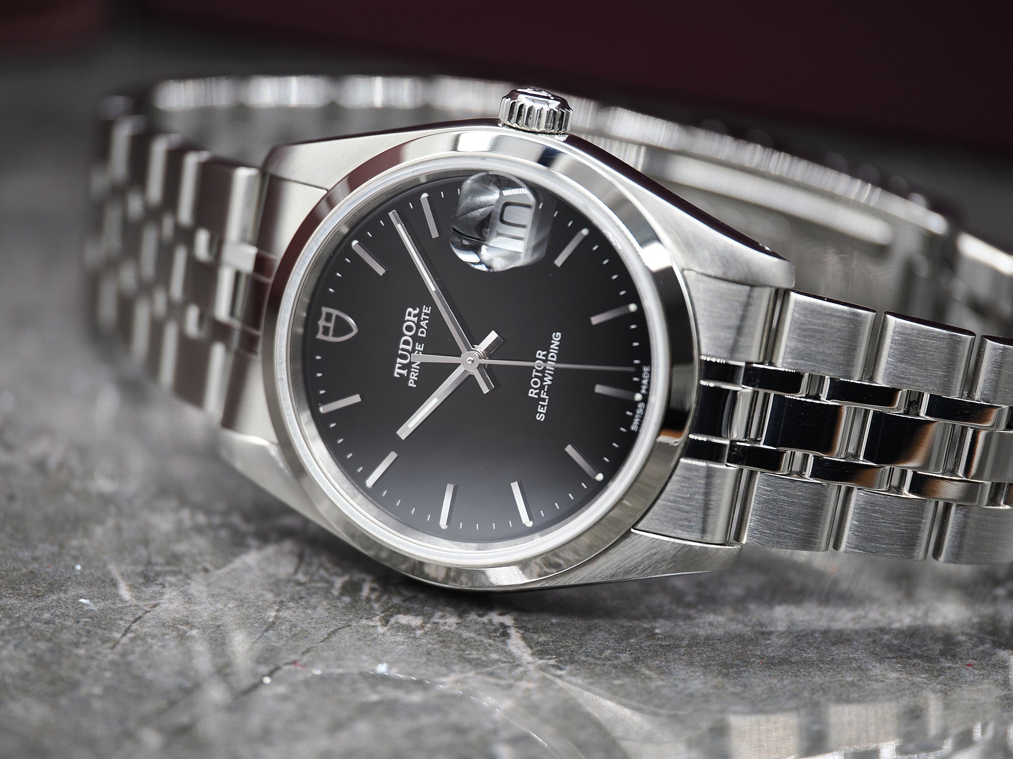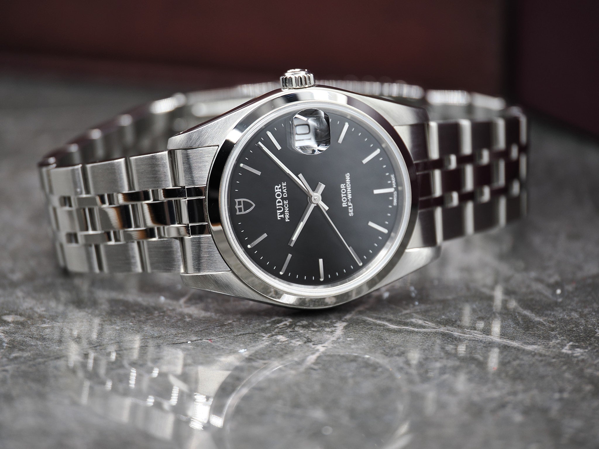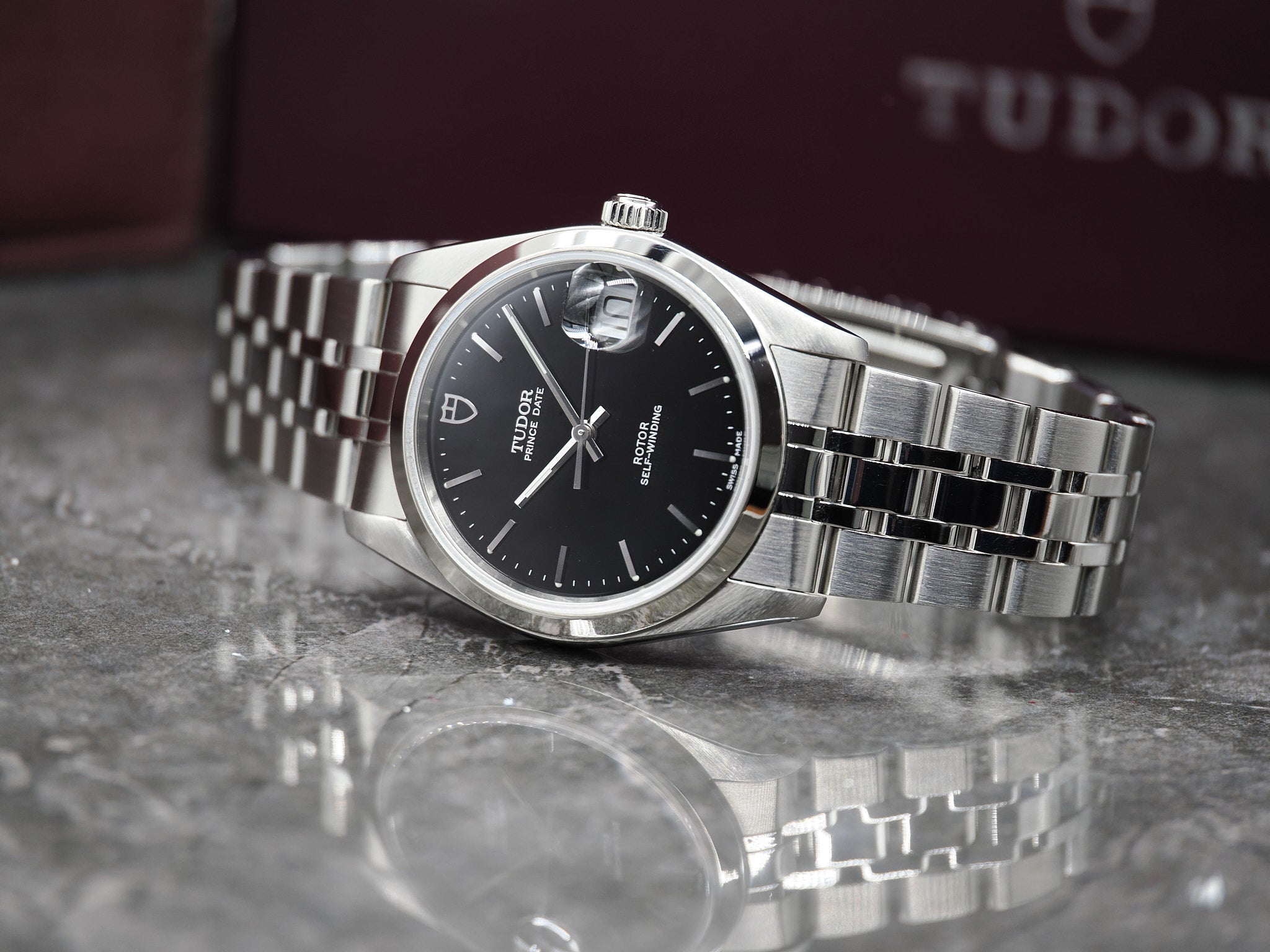 Tudor Prince Date Ref. 74000N mit schwarzem Zifferblatt mit Box und Papieren.