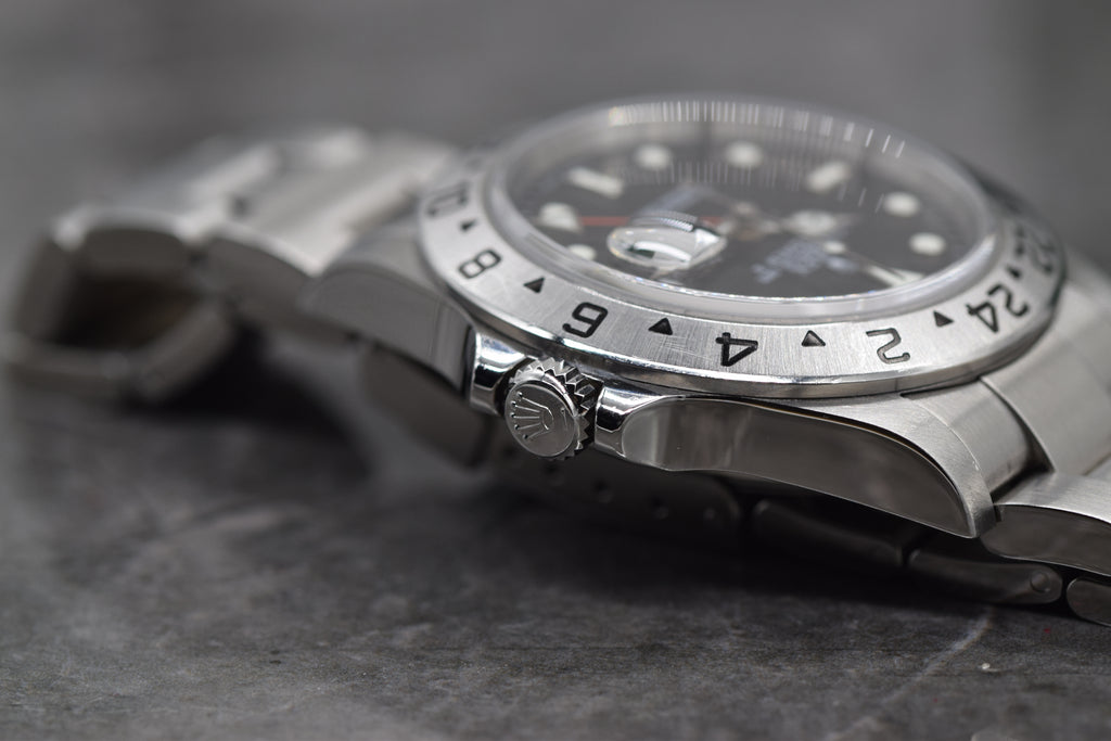 Die Rolex Explorer Referenz 16570 wurde zwischen 1989 und 2011 gebaut. Da es sich um eine F-Serial handelt, trägt die Rolex bereits das lasergravierte Saphirglas. In der Rolex schlägt das Kaliber 3185.