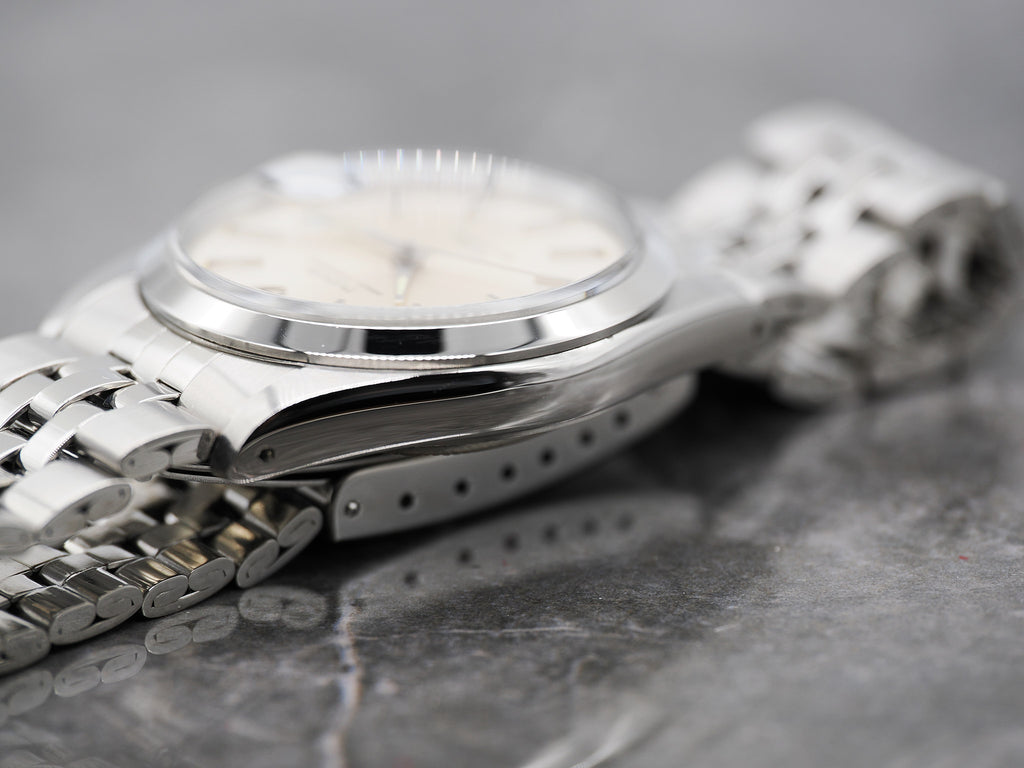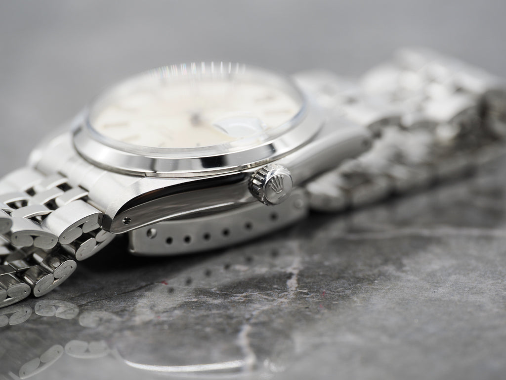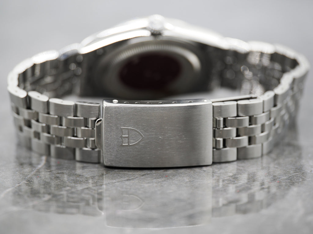 Die wunderschöne Tudor mit der Referenz 74000 ist die kleine Schwester der 94500. Die Referenz wurde, wie der Vorgänger, bereits eingestellt und wird nicht mehr gebaut. Sie verfügt über das begehrte Rolex Oyster Case samt Rolex Krone. Der Gehäusedurchmesser beträgt ca. 34mm. Es sind alle Bandglieder vorhanden. Die Seriennummer lautet: 309xxx. Somit wurde die Tudor in 1989 gebaut. Optisch befindet sich die Tudor in einem sehr guten Zustand. Es gibt wenige Tragespuren. Das Plexiglas ist kratzerfrei. Der originale Gehäusebodensticker hat eine Verfärbung - diese ist auf dem Sticker und nicht dem Gehäuseboden. Bitte nutzen Sie die hochauflösenden Bilder als Referenz der Zustandsbeschreibung. Das Werk der Tudor wurde überprüft und für einwandfrei befunden. Sie erhalten ab Kauf eine Garantie auf das Uhrwerk von 12 Monaten. Sie erhalten einen Nachweis über die Gangabweichung (3.3s/d) und Wasserdichtigkeit (10 Bar). Es sind keine Box, Papiere oder weiteres Zubehör vorhanden. Händlerrechnung Zu diesem Artikel wird Ihnen selbstverständlich eine Händlerrechnung ausgestellt. |