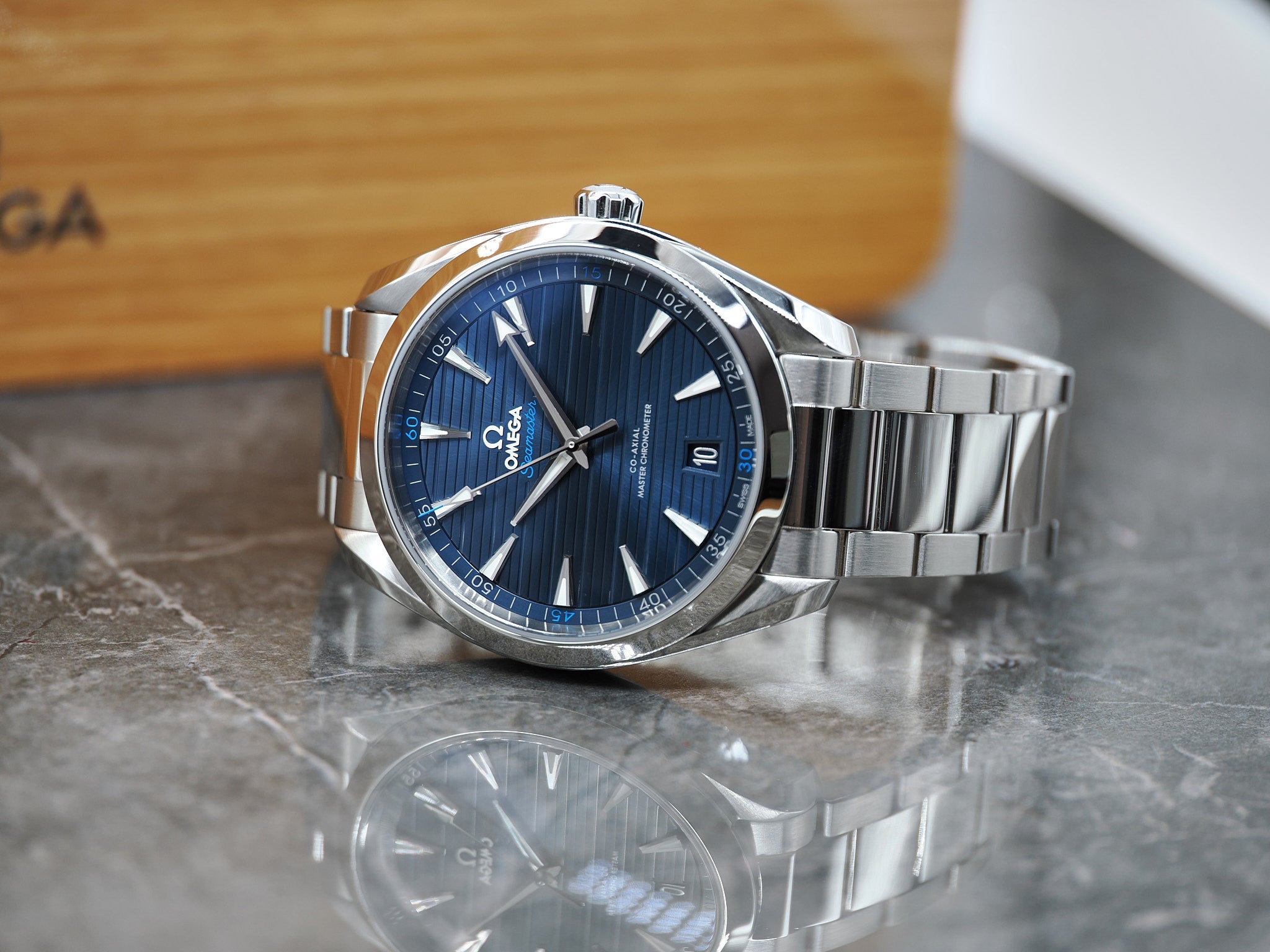 Omega Seamaster Aqua Terra 150M Ref. 220.10.41.21.03.001 mit blauen Zifferblatt im Fullset aus 2019.