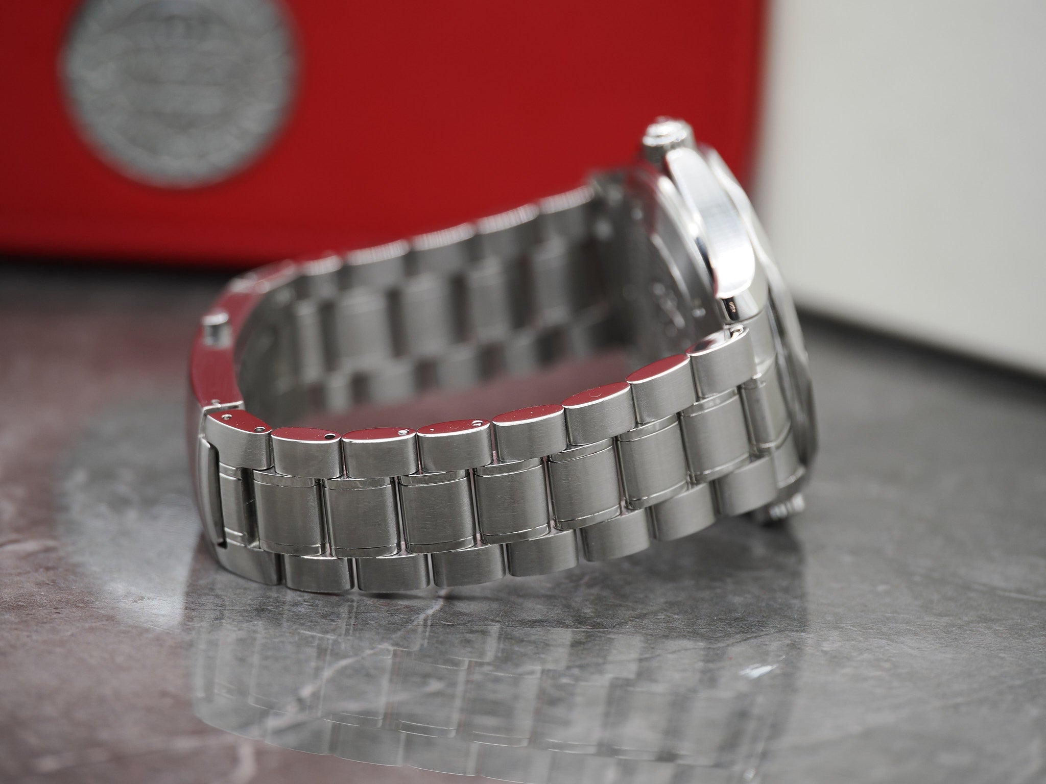 Die Seamaster-Linie, die im Jahr 1948 ihr Geburtsjahr feiert, ist die älteste Modell-Linie der Marke Omega. Damals wurden die wasserdichten Uhren an die britische Royal Navy für den zweiten Weltkrieg produziert und hergestellt. Im Jahr 2000 wurde das hier inserierte Modell mit dem Spitznamen "Schwerty" aufgrund der Schwertzeiger von Omega vorgestellt. Dabei vereint die "Schwerty" die klassischen Züge der Seamaster Professional Diver Serie mit einem schwarzen Wellenziffernblatt, Sekundenzeiger mit markanter roter Spitze und einem hochglanzlackierten Lünetteninlay. Es handelt sich um die Variante mit dem Omega Quartz Uhrwerk. Der Durchmesser der Uhr beträgt ca. 41mm. Die Omega passt bis zu einem von ca. 19,5cm. Wir schätzen das Baujahr auf ca. 2003. Zustand Die Omega befindet sich optisch in einem sehr guten Zustand. Das Saphirglas trägt auf Höhe von 3 Uhr Mikrokratzer. Bitte nutzen sie die hochauflösenden Bilder um sich einen Eindruck zu verschaffen, diese gelten als Zustandsbeschreibung. Das Werk der Omega hat im Februar 2026 eine neue Batterie erhalten. Sie erhalten ein Jahr Garantie auf das Uhrwerk. Das Set inkludiert die Omega Seamaster Prof. "Schwerty", Garantiekarte (offenes Datum und Stempel), Pictograms-Karte, Bedienungsanleitung, Nachweis Wasserdichtigkeit (10 Bar), Omega Box und Umkarton. Händlerrechnung Zu diesem Artikel wird Ihnen selbstverständlich eine Händlerrechnung ausgestellt. |