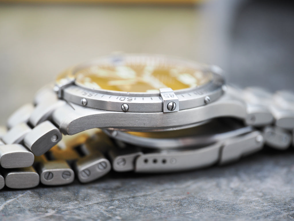 Die Breitling Aerospace wurde im Jahr 1985 vorgestellt. Es handelt sich hierbei um die Grade 2 Titan Variante. Der Durchmesser der Breitling beträgt ca. 40mm. Sie passt an einen Handgelenksumfang von bis zu ca. 20cm. Zustand Die Breitling befindet sich optisch in einem sehr guten Zustand mit nur geringen Tragespuren, die sich hauptsächlich an der Schließe befinden. Das Saphirglas ist kratzerfrei. Bitte nutzen sie die hochauflösenden Bilder um sich einen Eindruck zu verschaffen, diese gelten als Zustandsbeschreibung. Die Breitling funktioniert technisch einwandfrei und wurde überprüft. Sie hat im November 2025 eine neue Batterie erhalten. Das Set inkludiert: Die originale Breitling Aerospace, Garantiezertifikat aus 2006, Chronometer-Zertifikat, beiliegendes Bandglied, Begleithefte und die Breitling Service Box. Bei Fragen können Sie uns jederzeit kontaktieren. Händlerrechnung Zu diesem Artikel wird Ihnen selbstverständlich eine Händlerrechnung ausgestellt. Mehrwertsteuer Der Artikel wird nach § 25 A USTG (Differenzbesteuerung) besteuert. |