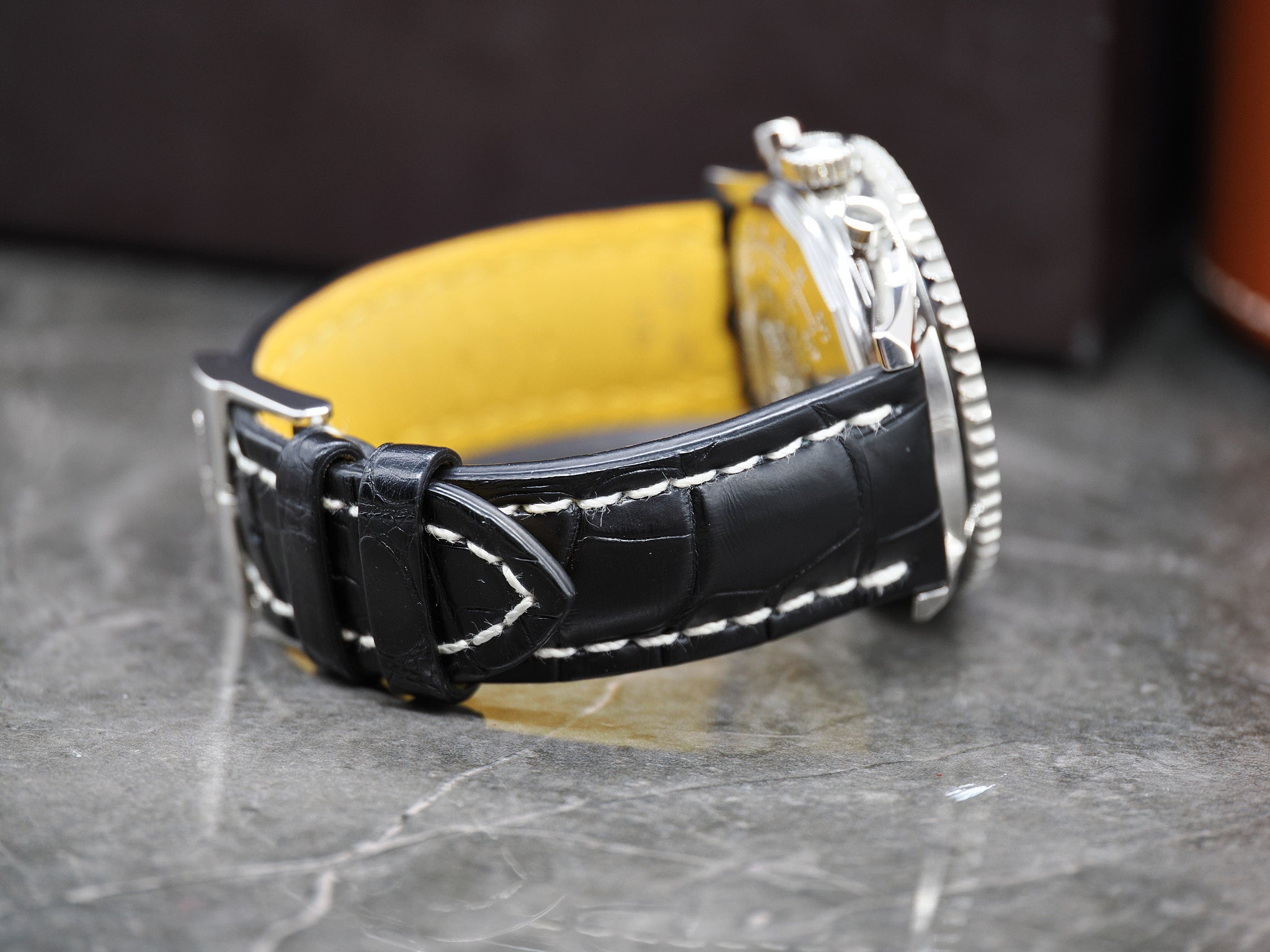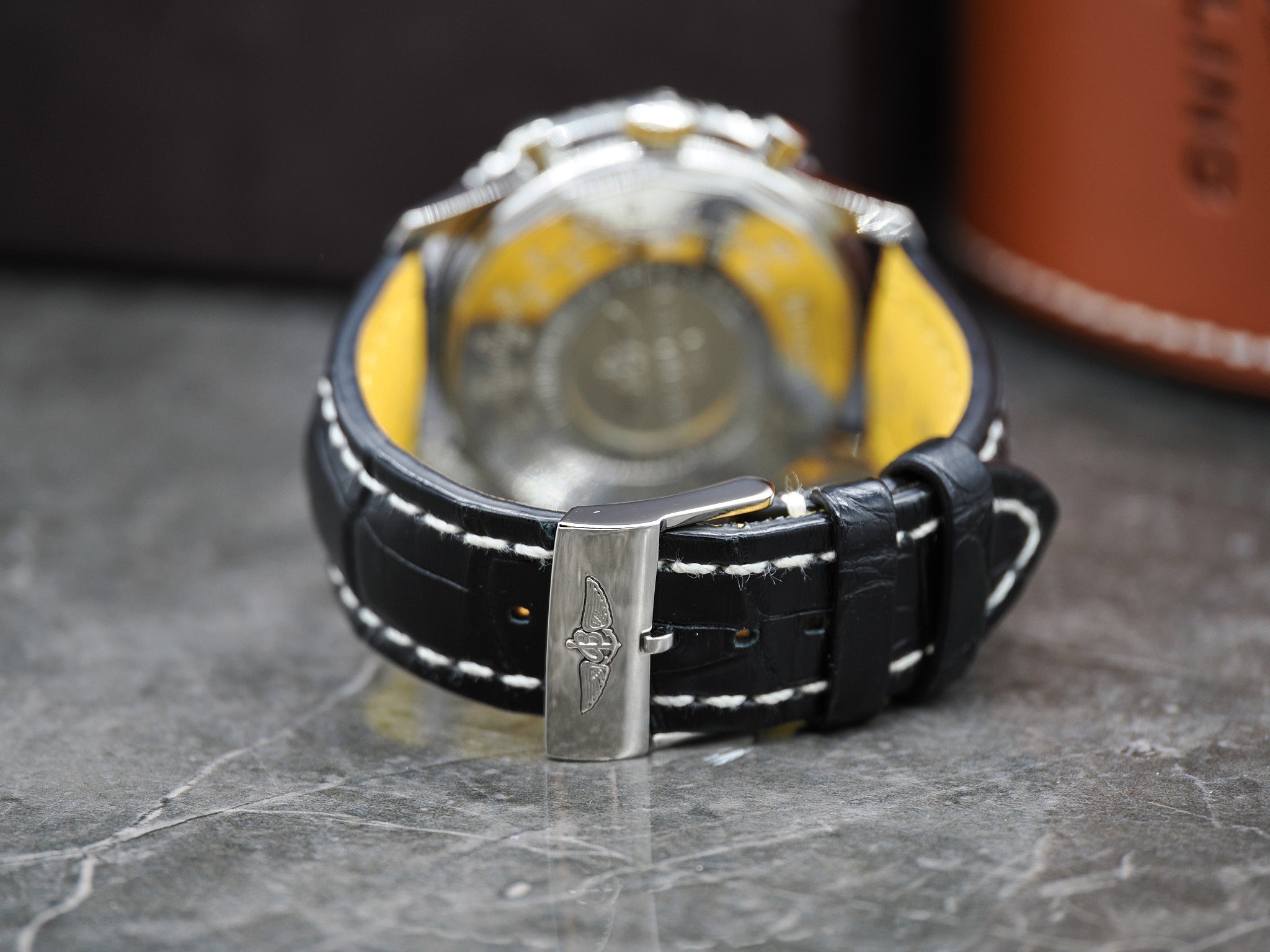 Der Breitling Navitimer Chronograph ist unbestreitbar eine der bekanntesten und begehrtesten Uhren der Geschichte. Seit der Entstehung des "klassischen" Navitimers in 1952 hat sich das Design und der Charakter kaum verändert. Die "world`s leading manufacturers of precision timepieces for the aviation industry" hat bis zum heutigen Tag diverse Varianten des Navitimers veröffentlicht. Diese Variante wird nicht mehr produziert und verfügt über das goldene "Breiling Wings" Emblem. In der Breitling schlägt das Manufakturwerk B01. Der Durchmesser der Breitling beträgt 43mm ohne Krone. Die Breitling kommt an einem Breitling Lederarmband und Breitling Dornschließe. Zustand Die Breitling befindet sich optisch in einem sehr guten Zustand. Das Saphirglas ist kratzerfrei. Bitte nutzen sie die hochauflösenden Bilder um sich einen Eindruck zu verschaffen, diese gelten als Zustandsbeschreibung. Die Breitling funktioniert technisch einwandfrei und wurde überprüft. Die tägliche Gangabweichung beläuft sich auf unter 5 Sekunden. Sie erhalten ein Jahr Garantie auf das Uhrwerk. Das Fullset inkludiert: Die originale Breitling Navitimer 01, Bedienungsanleitung, diverse Zusatzhefte, elektronische Garantiekarte aus 01.2018, Chronometerzertifikat, Nachweis Gangabweichung (4.4s/d) und Wasserdichtigkeit (3 Bar), Box und Umkarton. Bei Fragen können Sie uns jederzeit kontaktieren. Händlerrechnung Zu diesem Artikel wird Ihnen selbstverständlich eine Händlerrechnung ausgestellt. |