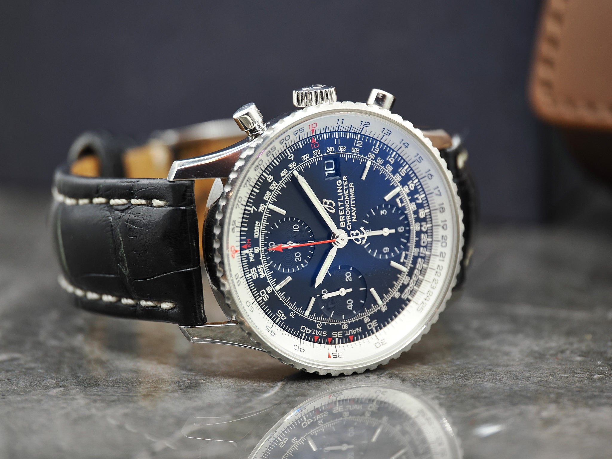 Der Breitling Navitimer Chronograph ist unbestreitbar eine der bekanntesten und begehrtesten Uhren der Geschichte. Seit der Entstehung des "klassischen" Navitimers in 1952 hat sich das Design und der Charakter kaum verändert. Die "world`s leading manufacturers of precision timepieces for the aviation industry" hat bis zum heutigen Tag diverse Varianten des Navitimers veröffentlicht. Der Durchmesser der Breitling beträgt ca. 41mm. An der Breitling ist das originale, getragene Breitling Lederarmband mit Dornschließe montiert. Die Dornschließe trägt Tragespuren. Zustand Die Breitling befindet sich optisch in einem sehr guten Zustand. Das Saphirglas ist kratzerfrei. Das AR-Coating trägt Mikrokratzer. Die Uhr trägt nur minimale Gebrauchsspuren. Bitte nutzen sie die hochauflösenden Bilder um sich einen Eindruck zu verschaffen, diese gelten als Zustandsbeschreibung. Die Breitling funktioniert technisch einwandfrei und wurde überprüft. Sie erhalten ein Jahr Garantie auf das Uhrwerk. Das Fullset inkludiert: Die Breitling Navitimer, Breitling Garantiekarte, Booklet, Bedienungsanleitung, Kartenhalter, Nachweis Gangabweichung (5s/d) und Wasserdichtigkeit (2 Bar), Box und Umkarton. Bei Fragen können Sie uns jederzeit kontaktieren. Händlerrechnung Zu diesem Artikel wird Ihnen selbstverständlich eine Händlerrechnung ausgestellt. |