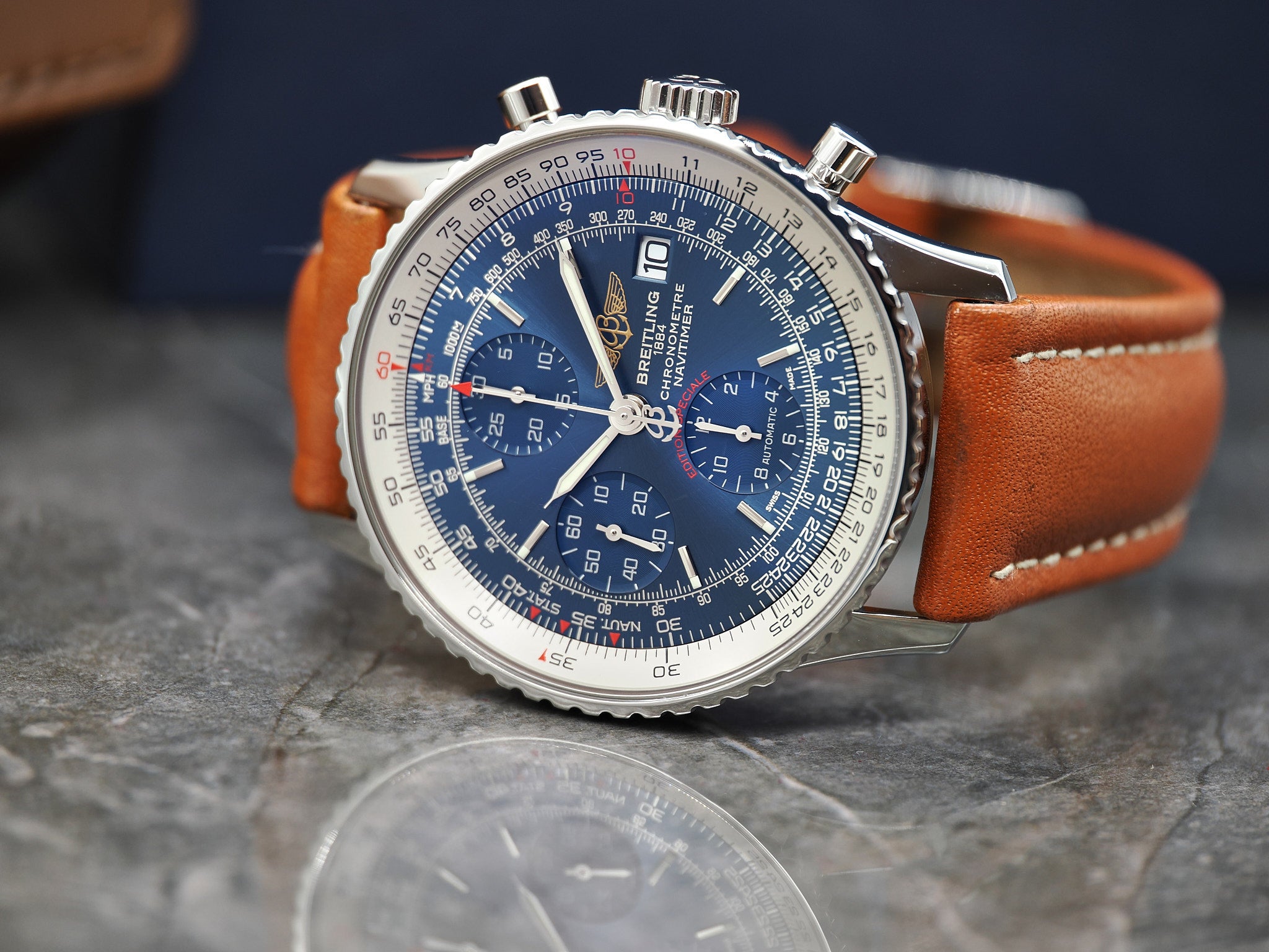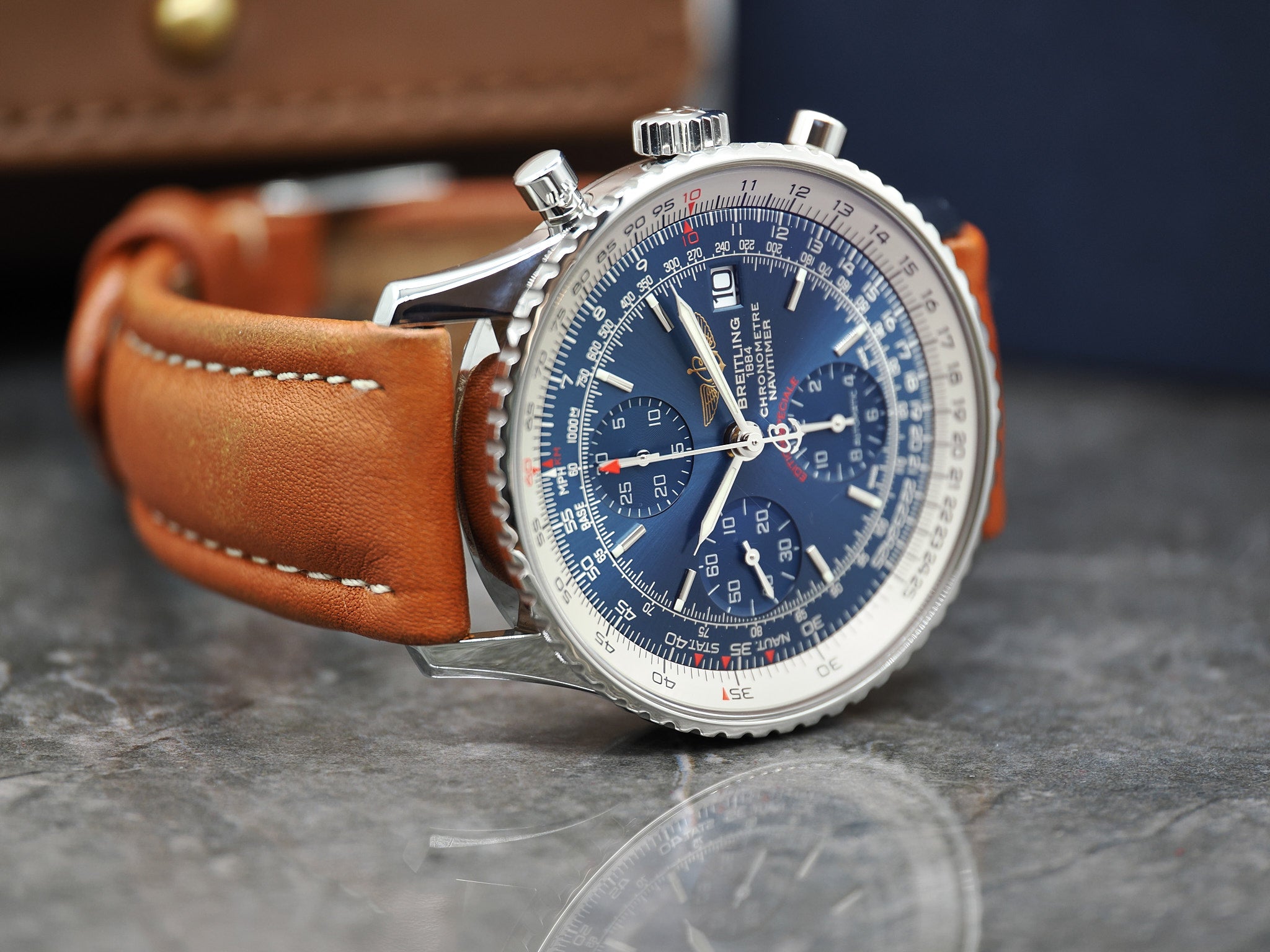 Der Breitling Navitimer Chronograph ist unbestreitbar eine der bekanntesten und begehrtesten Uhren der Geschichte. Seit der Entstehung des "klassischen" Navitimers in 1952 hat sich das Design und der Charakter kaum verändert. Die "world`s leading manufacturers of precision timepieces for the aviation industry" hat bis zum heutigen Tag diverse Varianten des Navitimers veröffentlicht. Der Durchmesser der Breitling beträgt 41mm ohne Krone. An der Breitling ist ein getragenes Breitling Lederarmband mit Dornschließe montiert. Eine zusätzliche Breitling Faltschließe ist im Paket ebenfalls inkludiert. Zustand Die Breitling befindet sich optisch in einem sehr guten Zustand. Das Saphirglas ist kratzerfrei. Das AR-Coating trägt Mikrokratzer. Bitte nutzen sie die hochauflösenden Bilder um sich einen Eindruck zu verschaffen, diese gelten als Zustandsbeschreibung. Die Breitling funktioniert technisch einwandfrei und wurde überprüft. Es besteht langfristig kein Bedarf für eine Revision. Sie erhalten ein Jahr Garantie auf das Uhrwerk. Das Fullset inkludiert: Die originale Breitling Navitimer Heritage A13324, Garantiekarte 2020, Chronometerzertifikat, Faltschließe, Kartenhalter, Begleithefte, Box und Umkarton. Bei Fragen können Sie uns jederzeit kontaktieren. Händlerrechnung Zu diesem Artikel wird Ihnen selbstverständlich eine Händlerrechnung ausgestellt. |