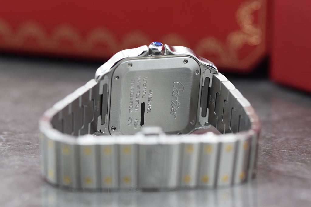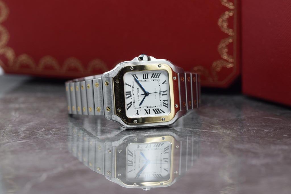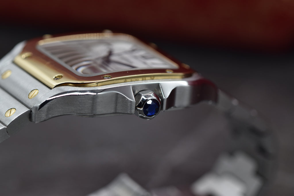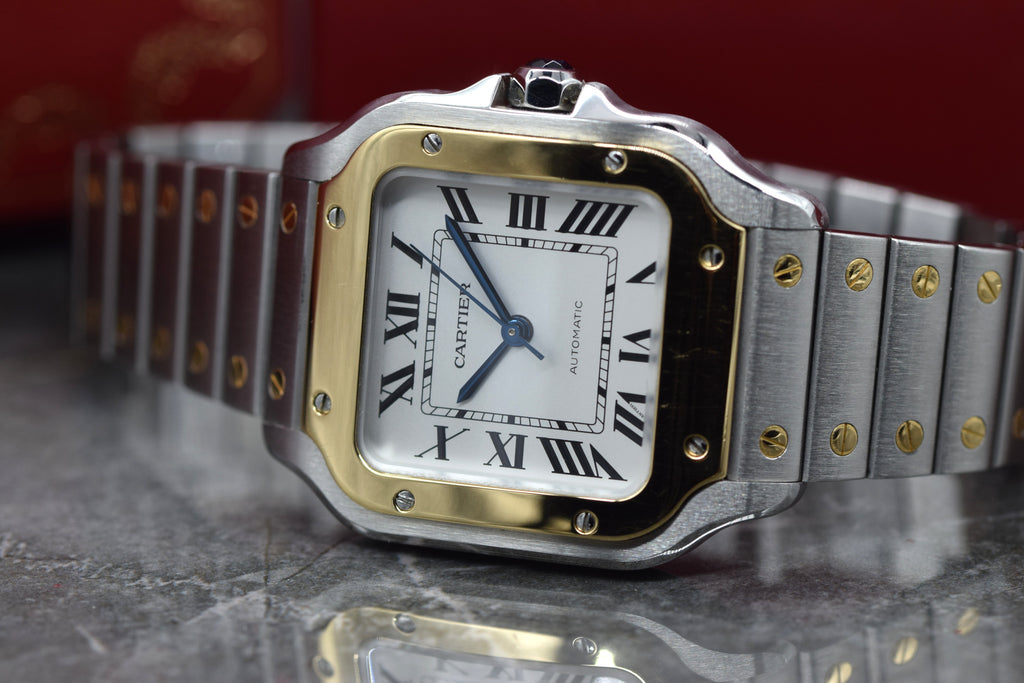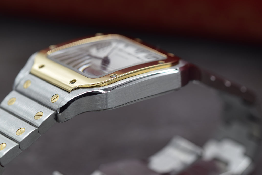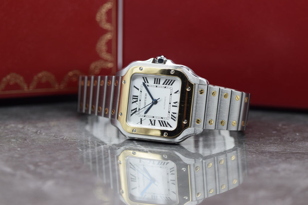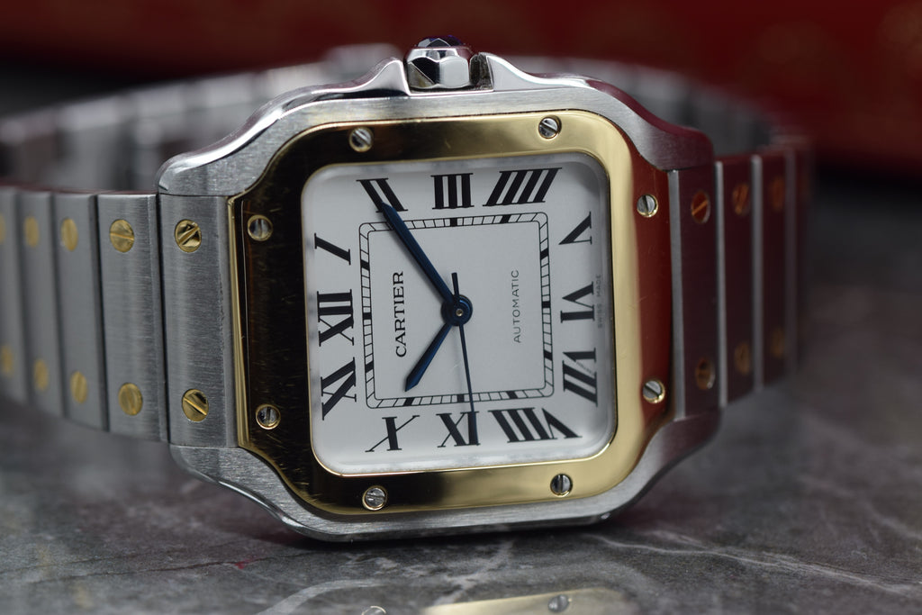 Die Cartier Santos hatte ihre Geburtsstunde im Jahr 1904. Cartier ist nicht nur die erste Uhrenmarke, die jemals für das Fliegen genutzt wurde, sie ist auch die erste Luxusuhren Marke, die Uhren in größerer Serie produziert hat. In den 70er Jahren hat sich die Cartier Santos zur Luxus "Sportuhr" entwickelt, indem das integrierte Lederarmband durch ein Stahlarmband ersetzt wurde.