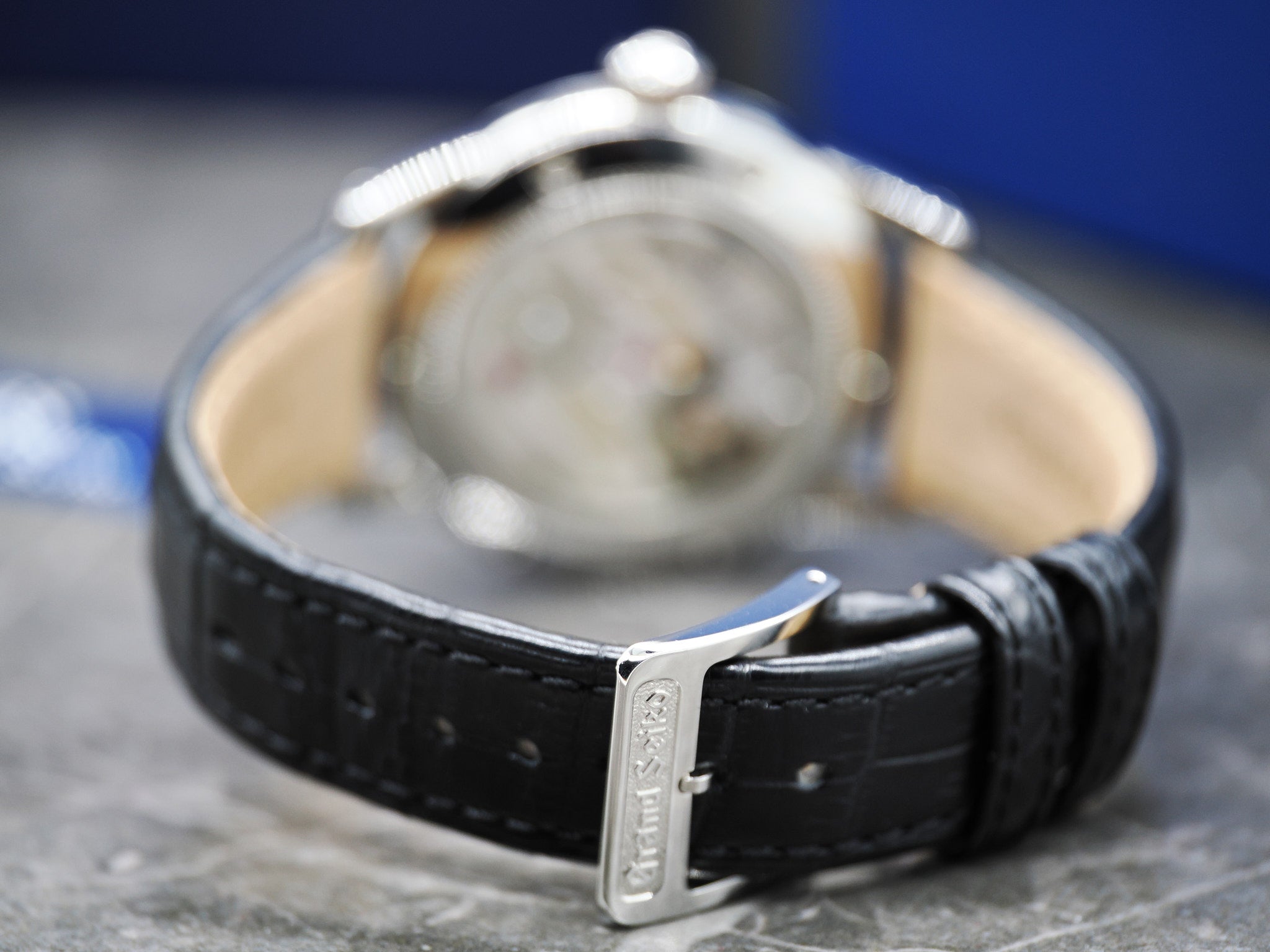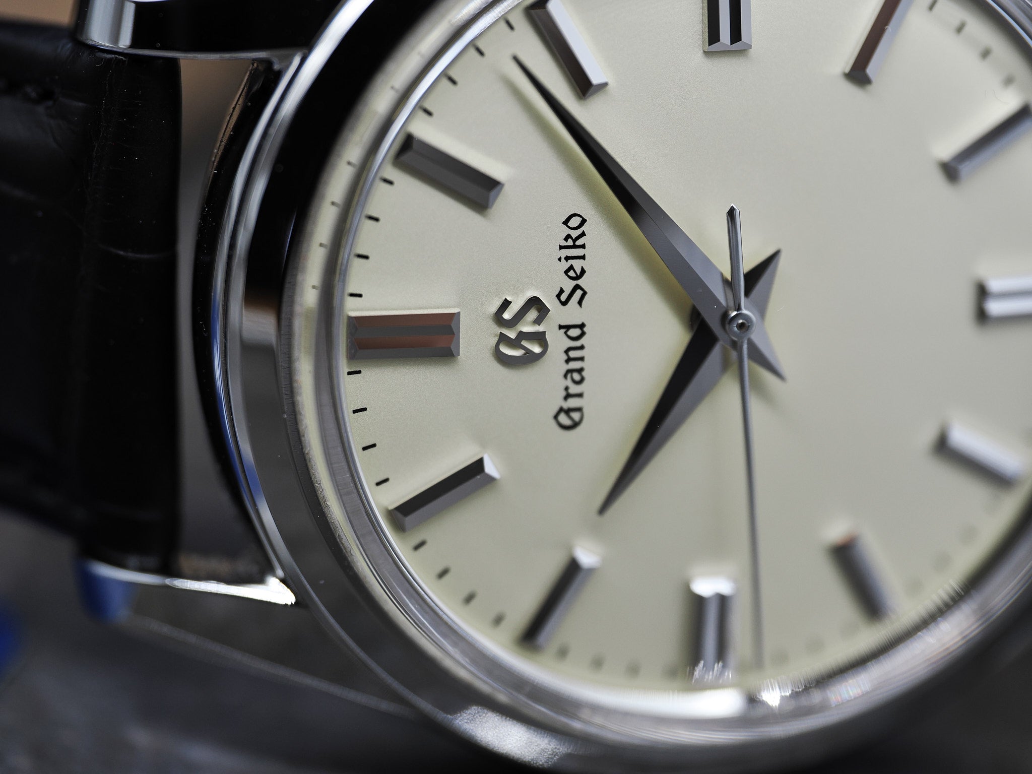 Der Durchmesser der Grand Seiko beträgt ca. 37,3mm. An der Grand Seiko ist das getragene, originale Lederarmband mit Grand Seiko Schließe montiert.