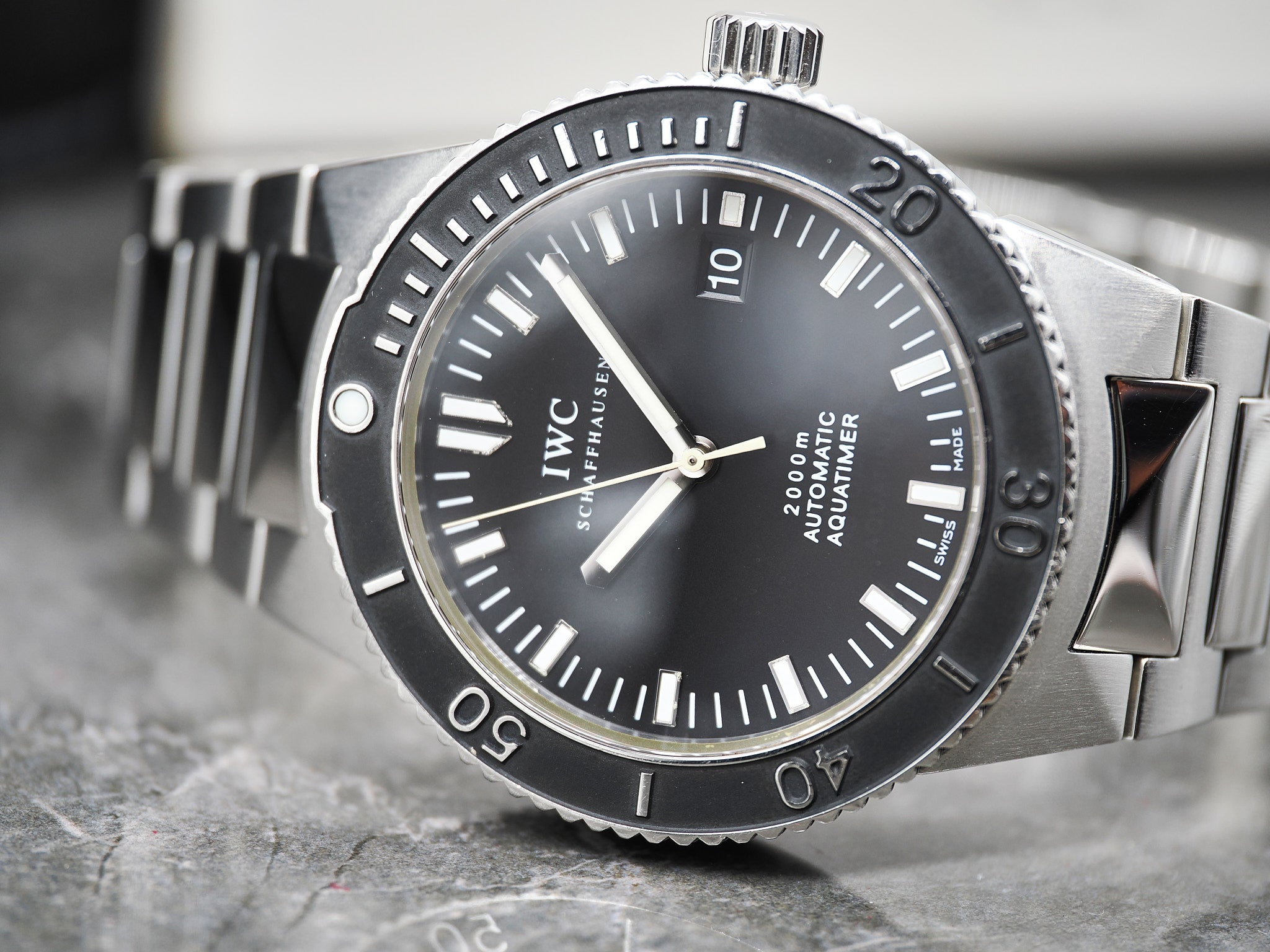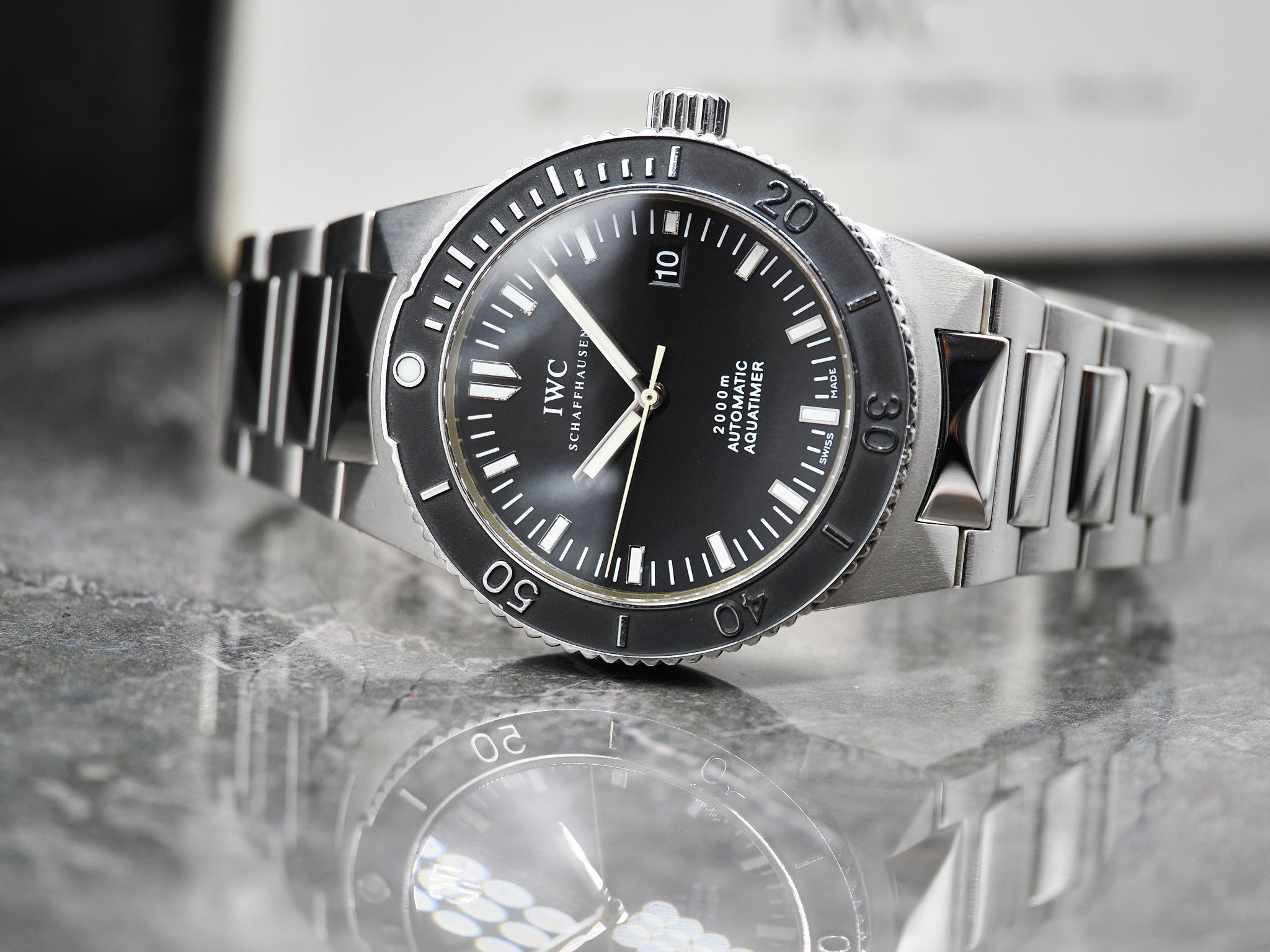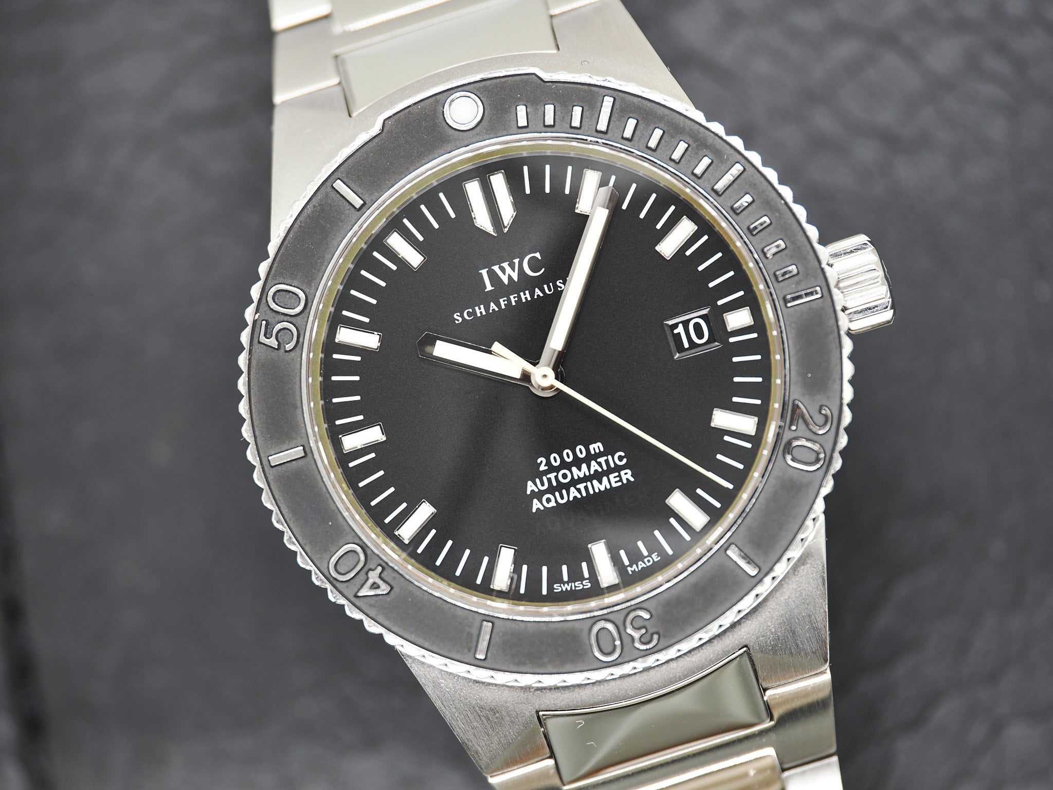 Im Jahr 1967 wurde die IWC Aquatimer, aufgrund der steigenden Nachfrage an Taucheruhren, ins Leben gerufen. Dabei hatte das Ursprungsmodell bereits eine Wasserdichtigkeit von bis zu 200 Meter. Der Nachfolger der Aquatimer die Ocean 2000 wurde in Zusammenarbeit mit Porsche realisiert und erreichte erstmals die Wasserdichtigkeit von bis zu 2000 Meter. Die hier inserierte Aquatimer wurde 1998 als Stahl und Titan Variante vorgestellt und gebaut. Bei der inserierten IWC handelt es sich um das stark nachgefragte Stahl Modell.