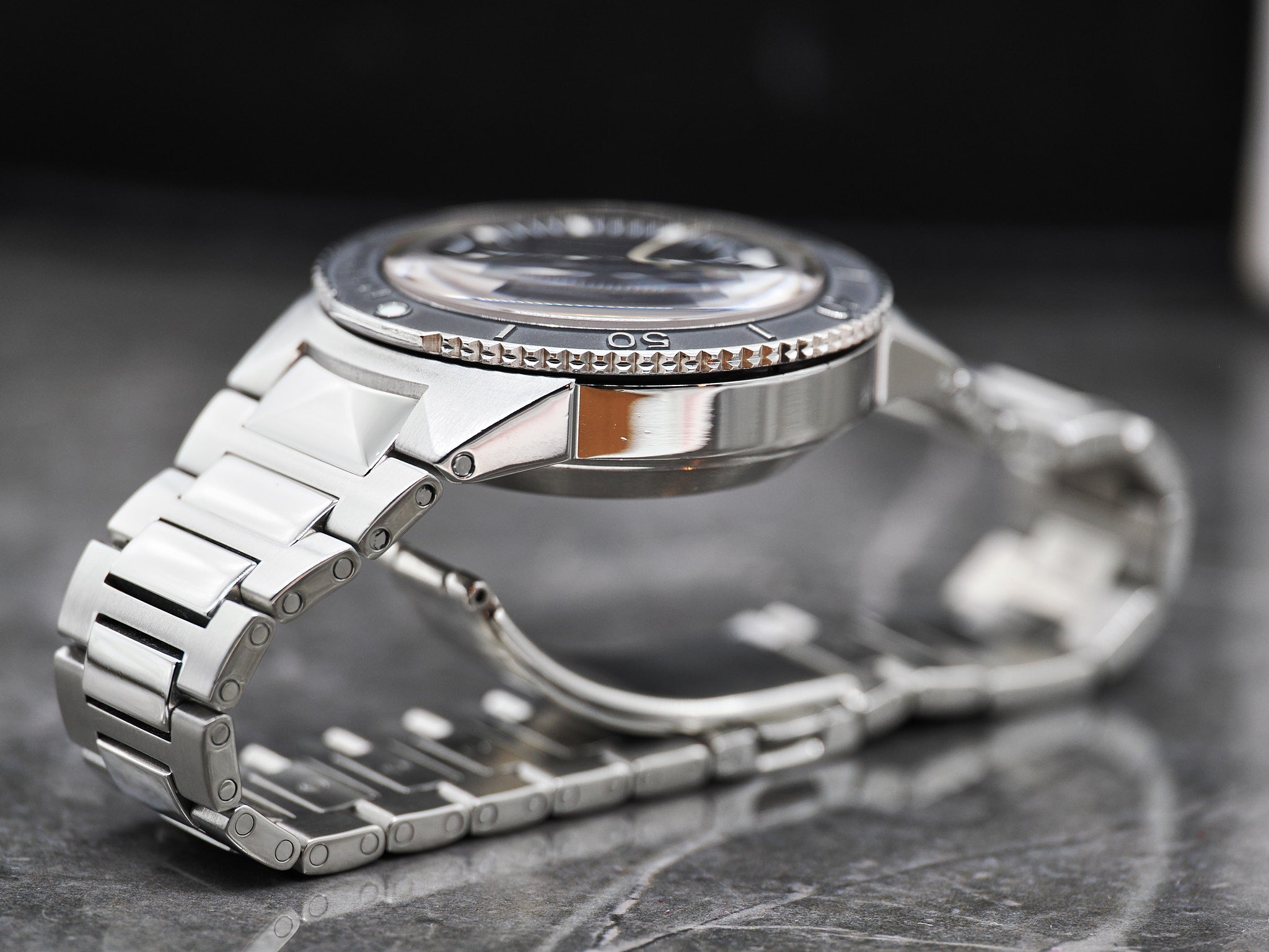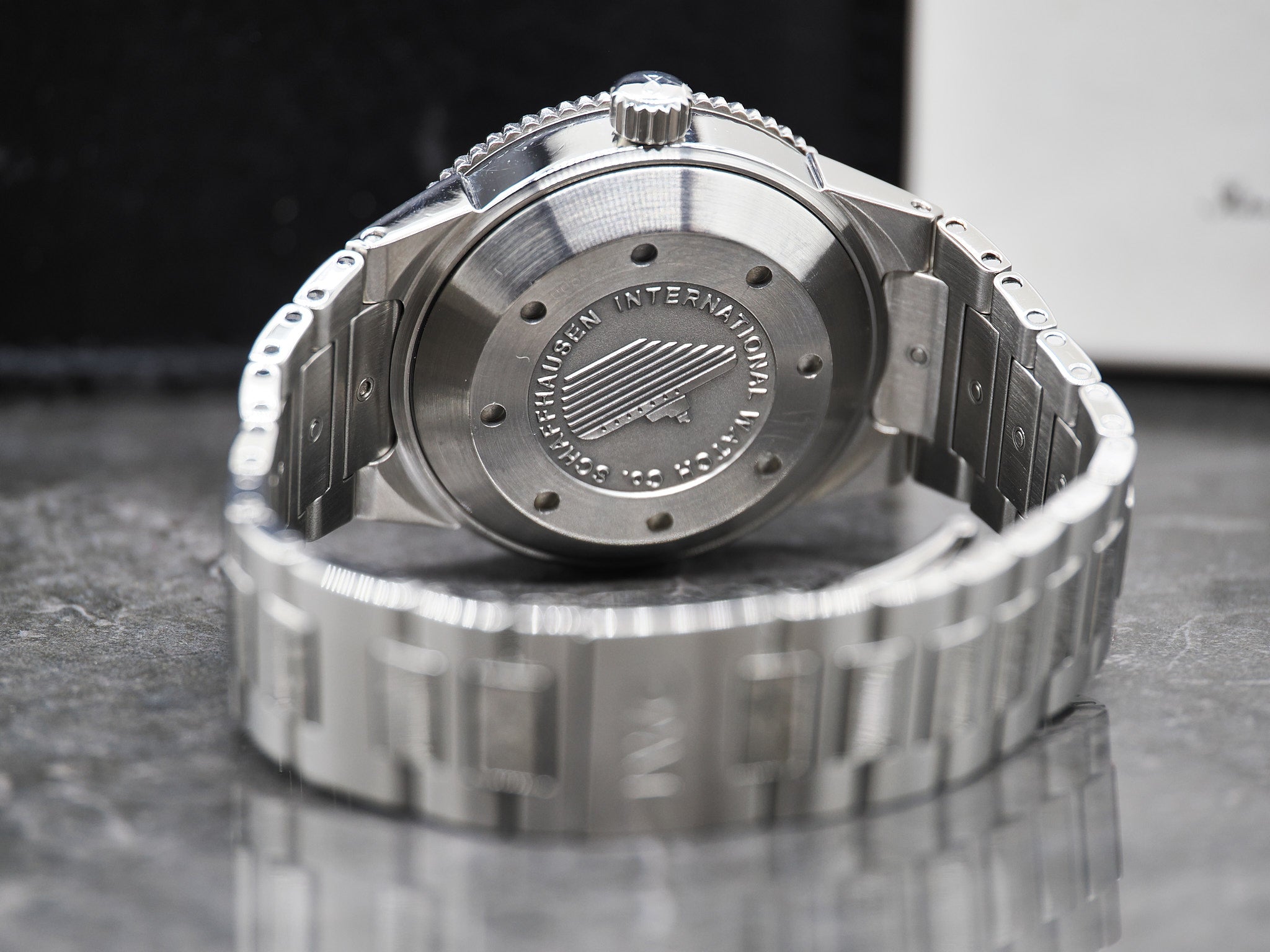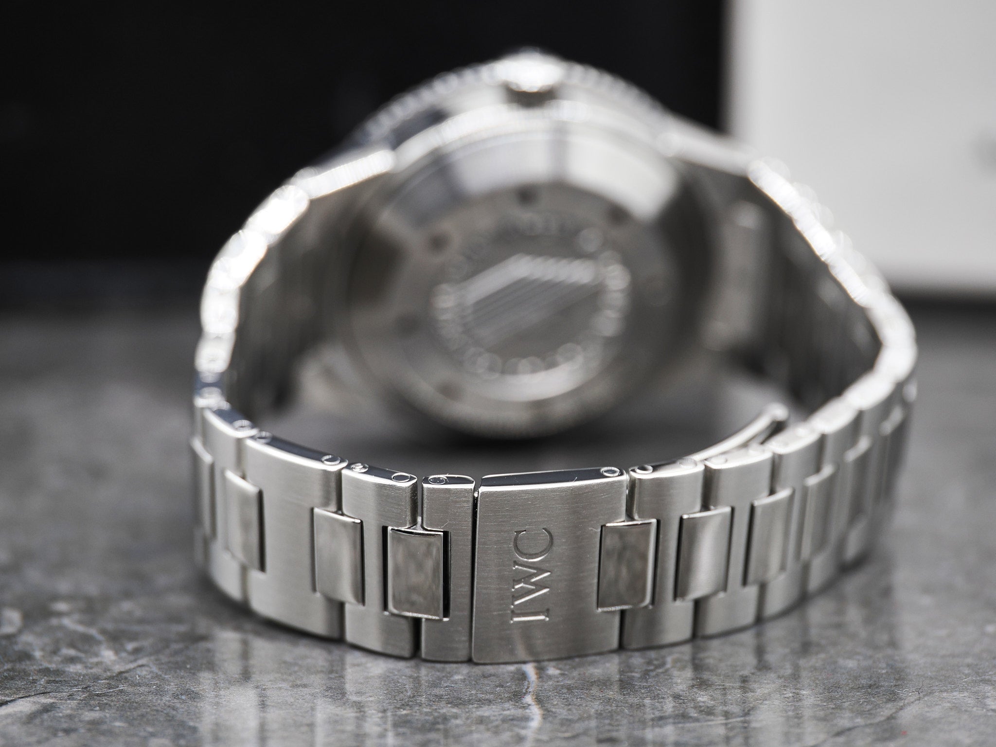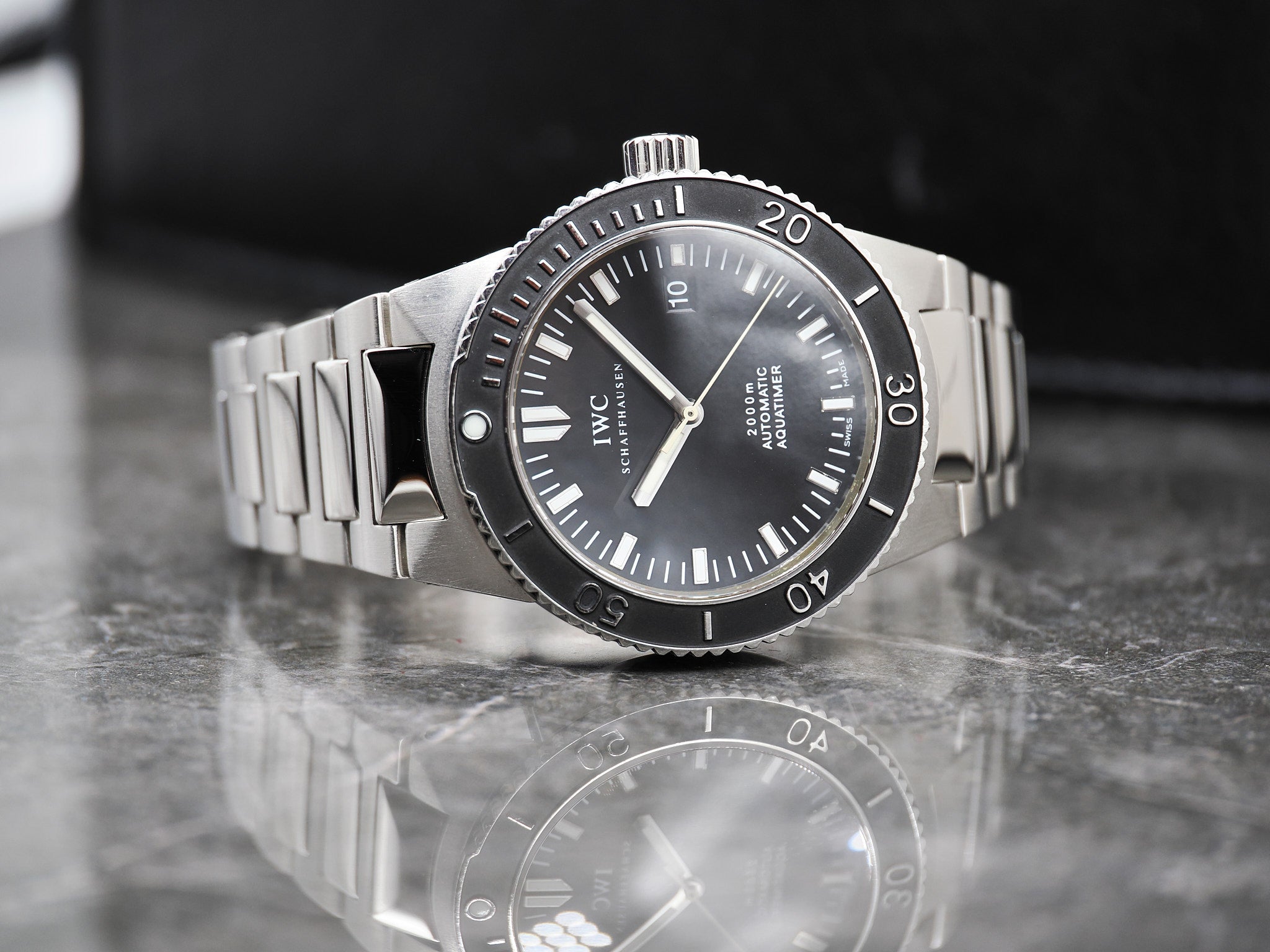 Im Jahr 1967 wurde die IWC Aquatimer, aufgrund der steigenden Nachfrage an Taucheruhren, ins Leben gerufen. Dabei hatte das Ursprungsmodell bereits eine Wasserdichtigkeit von bis zu 200 Meter. Der Nachfolger der Aquatimer die Ocean 2000 wurde in Zusammenarbeit mit Porsche realisiert und erreichte erstmals die Wasserdichtigkeit von bis zu 2000 Meter. Die hier inserierte Aquatimer wurde 1998 als Stahl und Titan Variante vorgestellt und gebaut. Bei der inserierten IWC handelt es sich um das stark nachgefragte Stahl Modell.