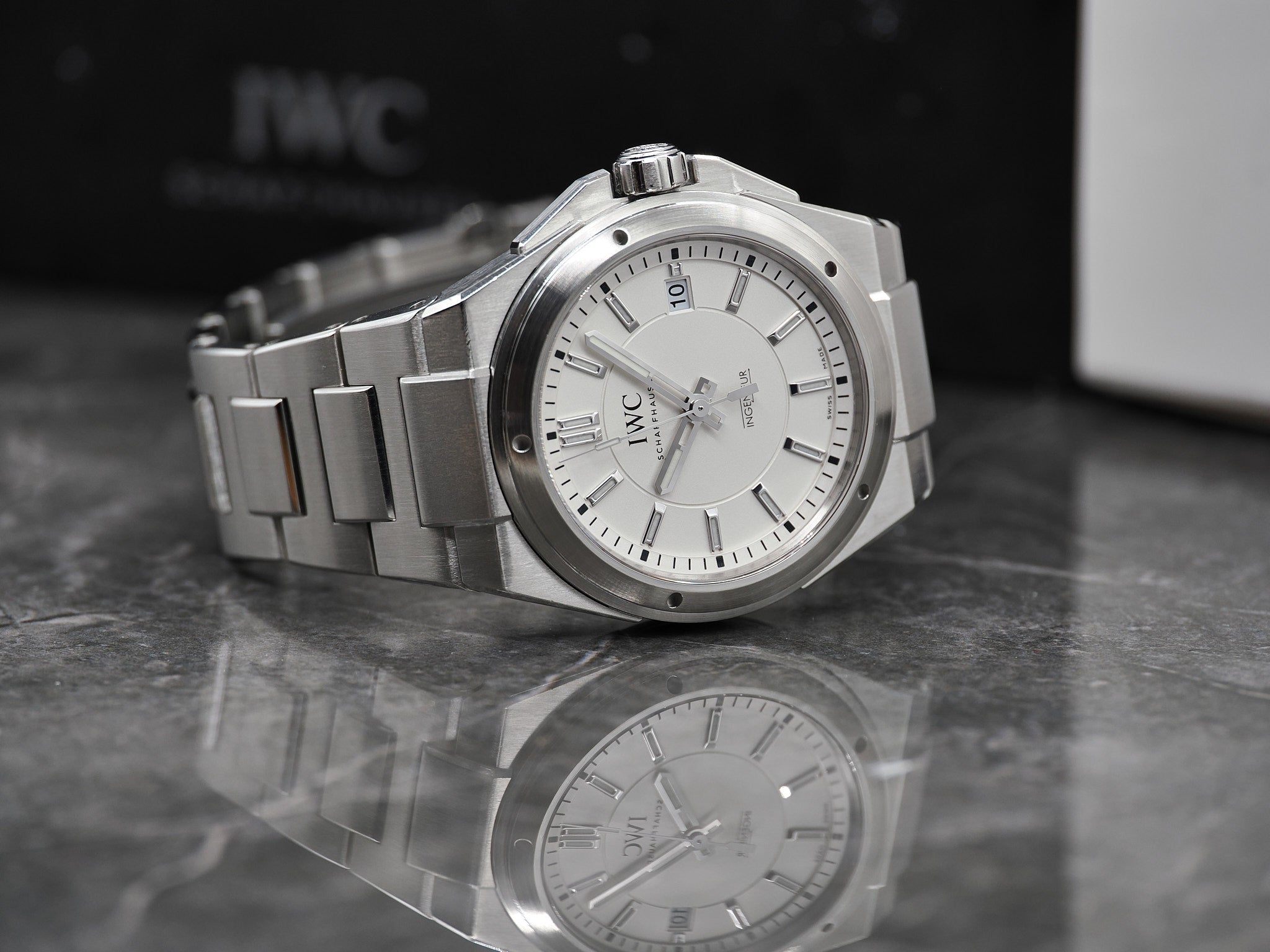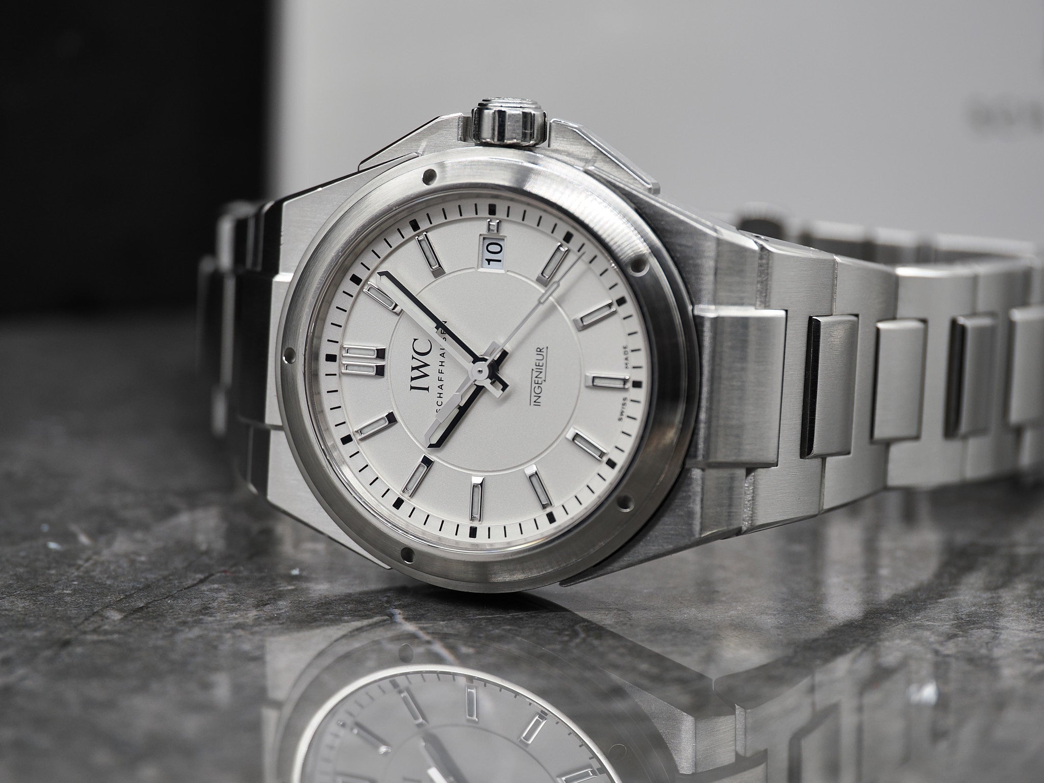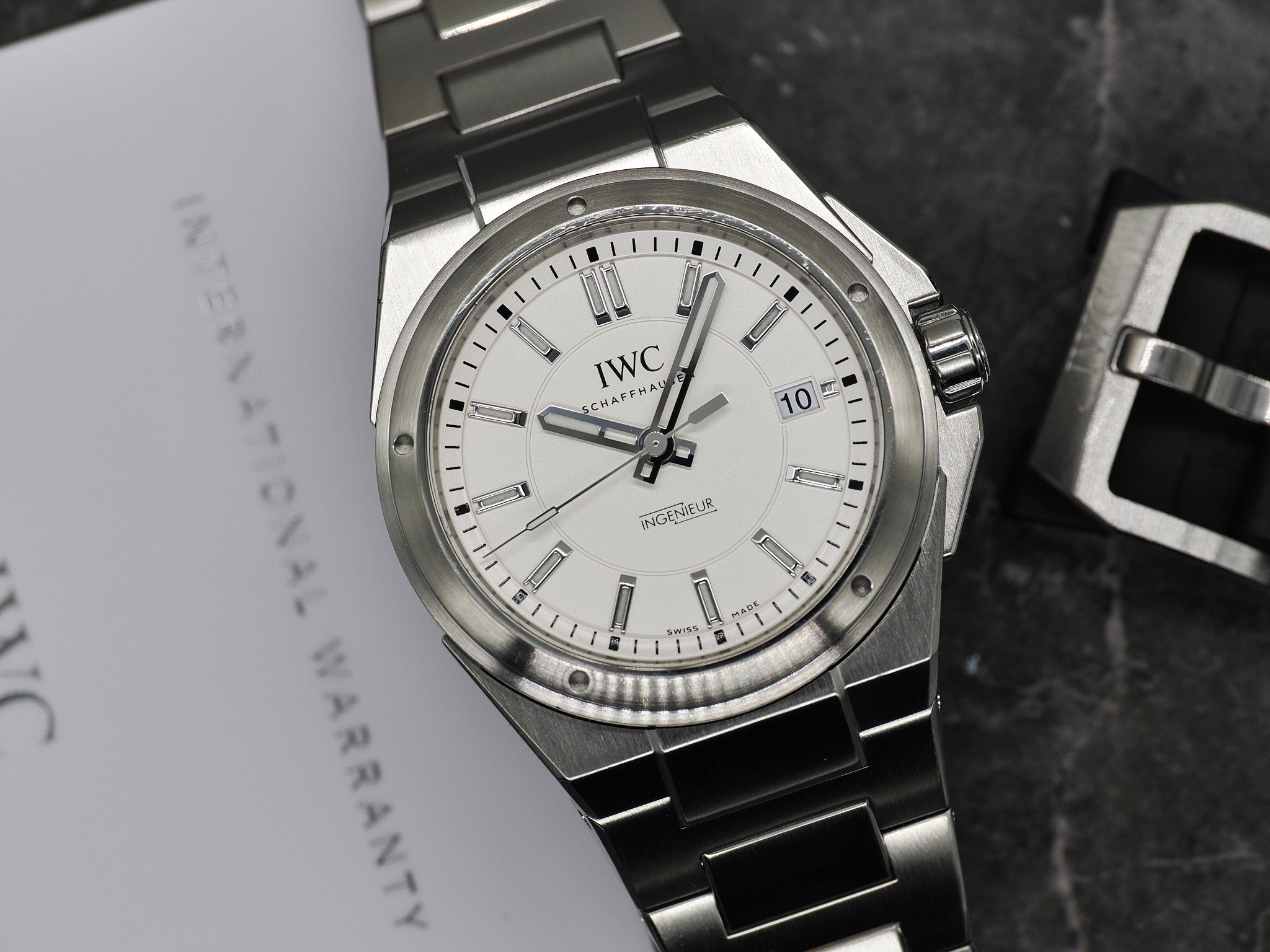 IWC Ingenieur Ref. IW323904 mit weißen Zifferblatt im Fullset aus 2016 mit zusätzlichen IWC Kautschukarmband.