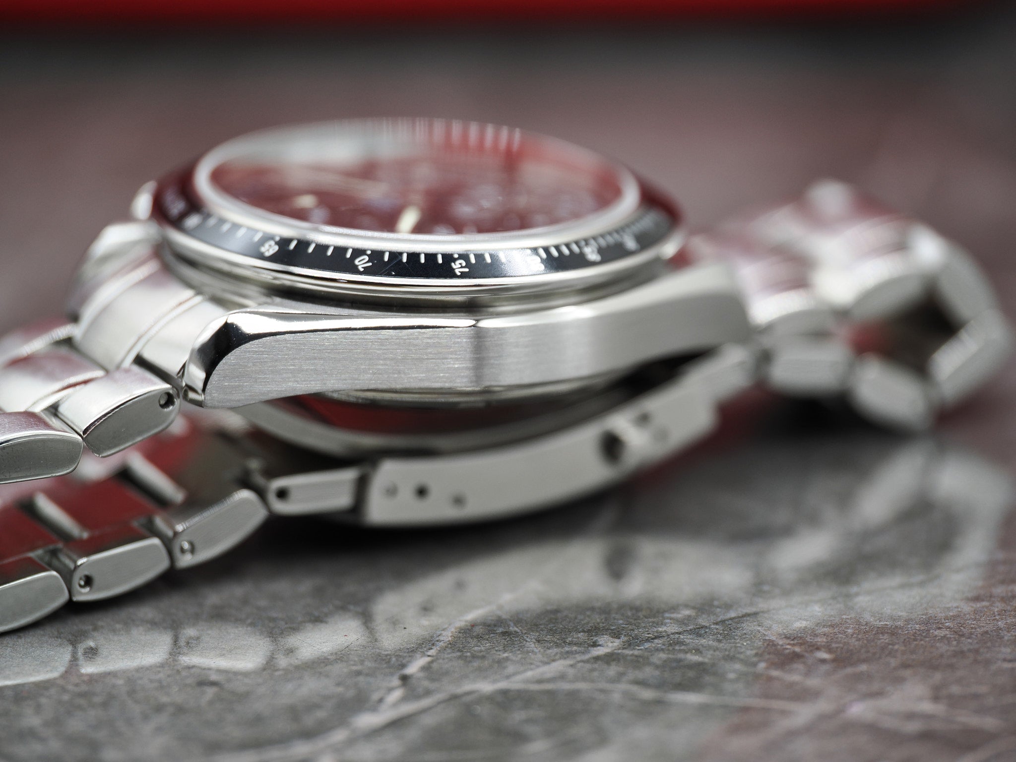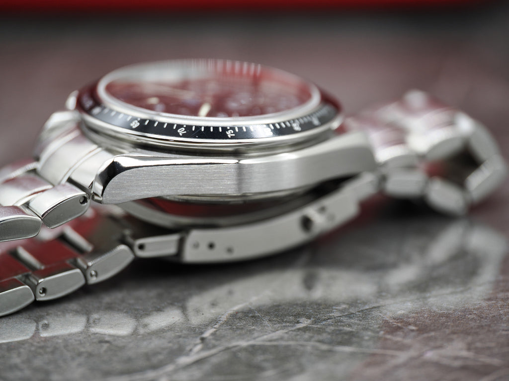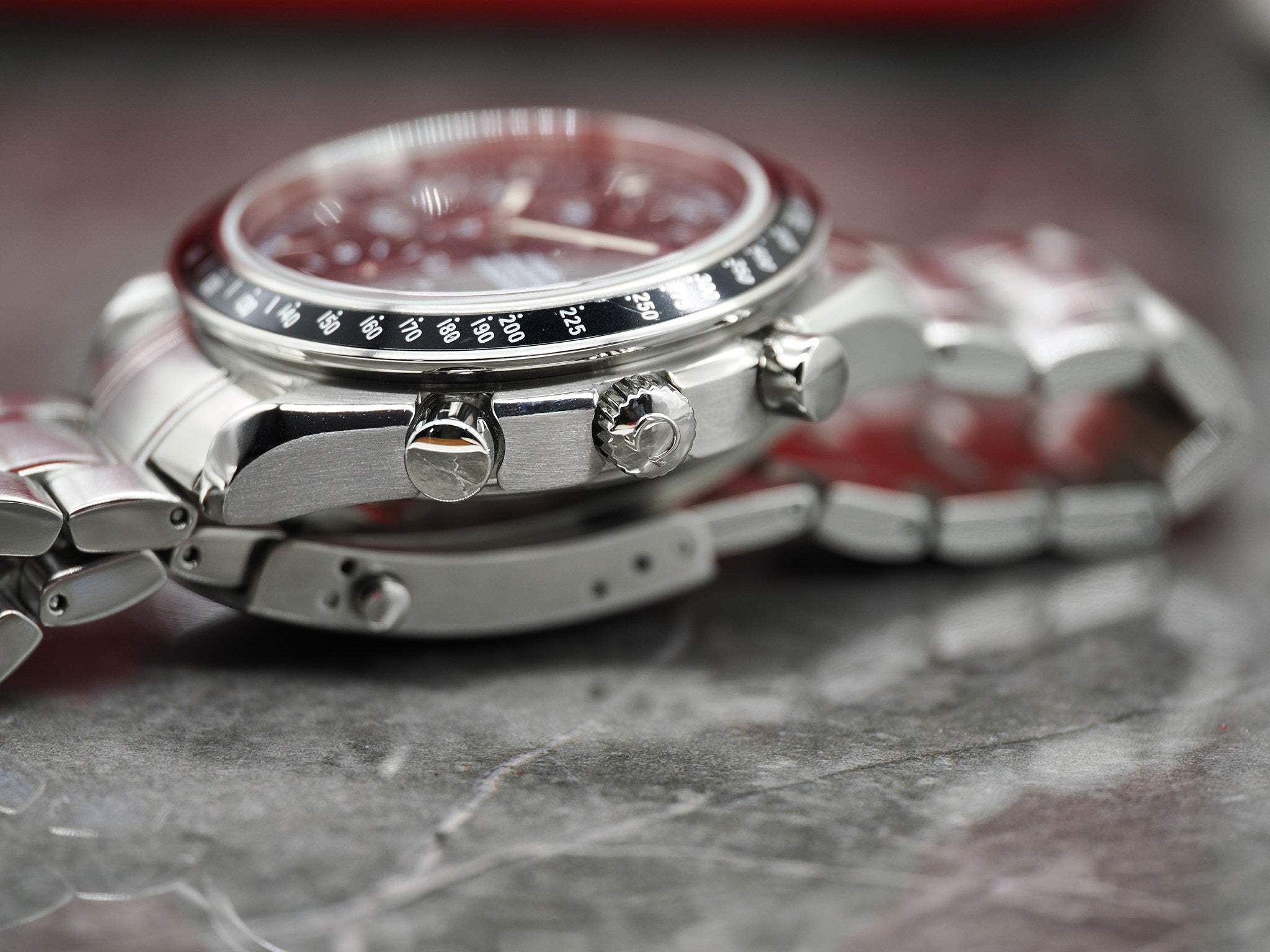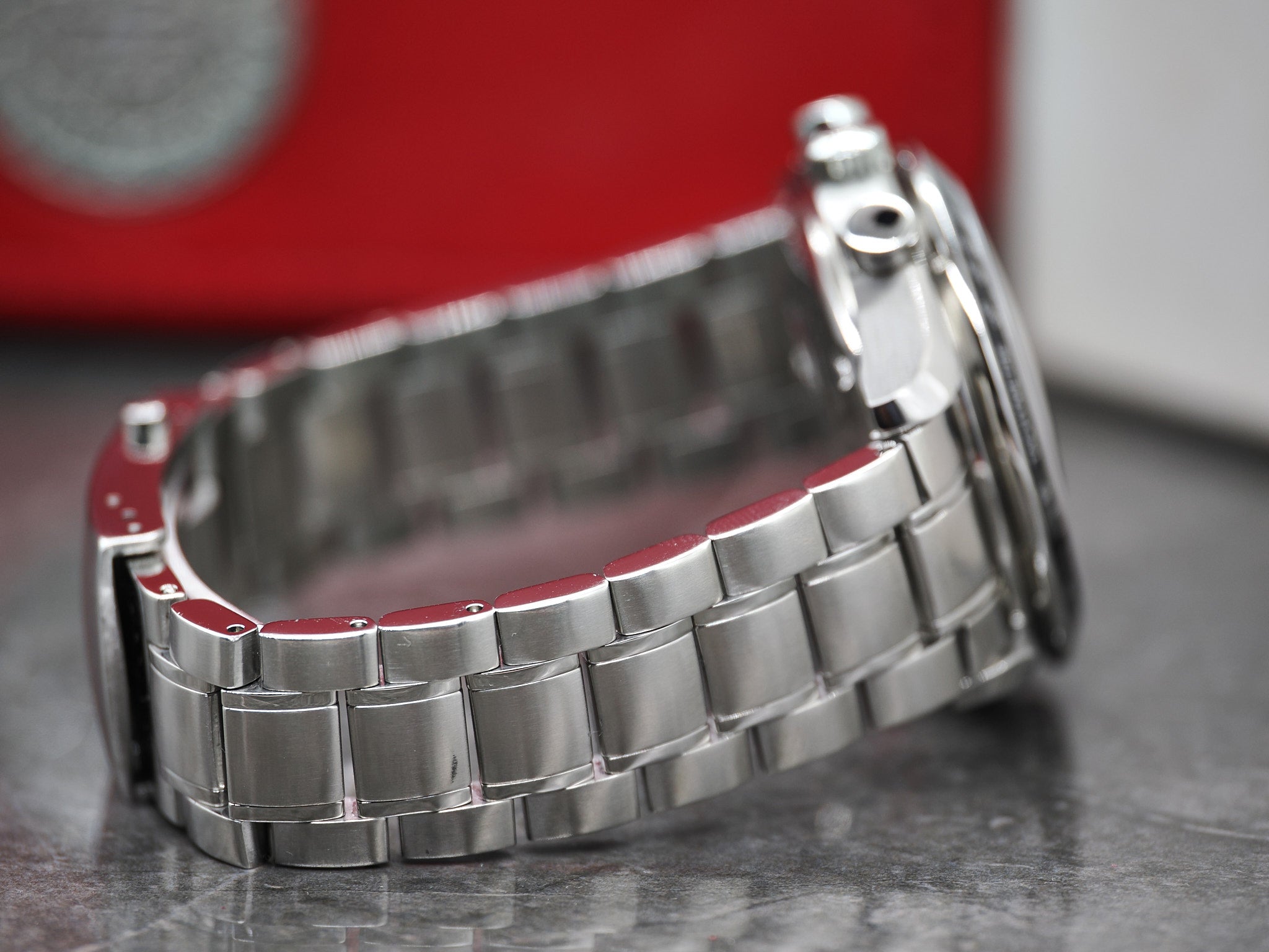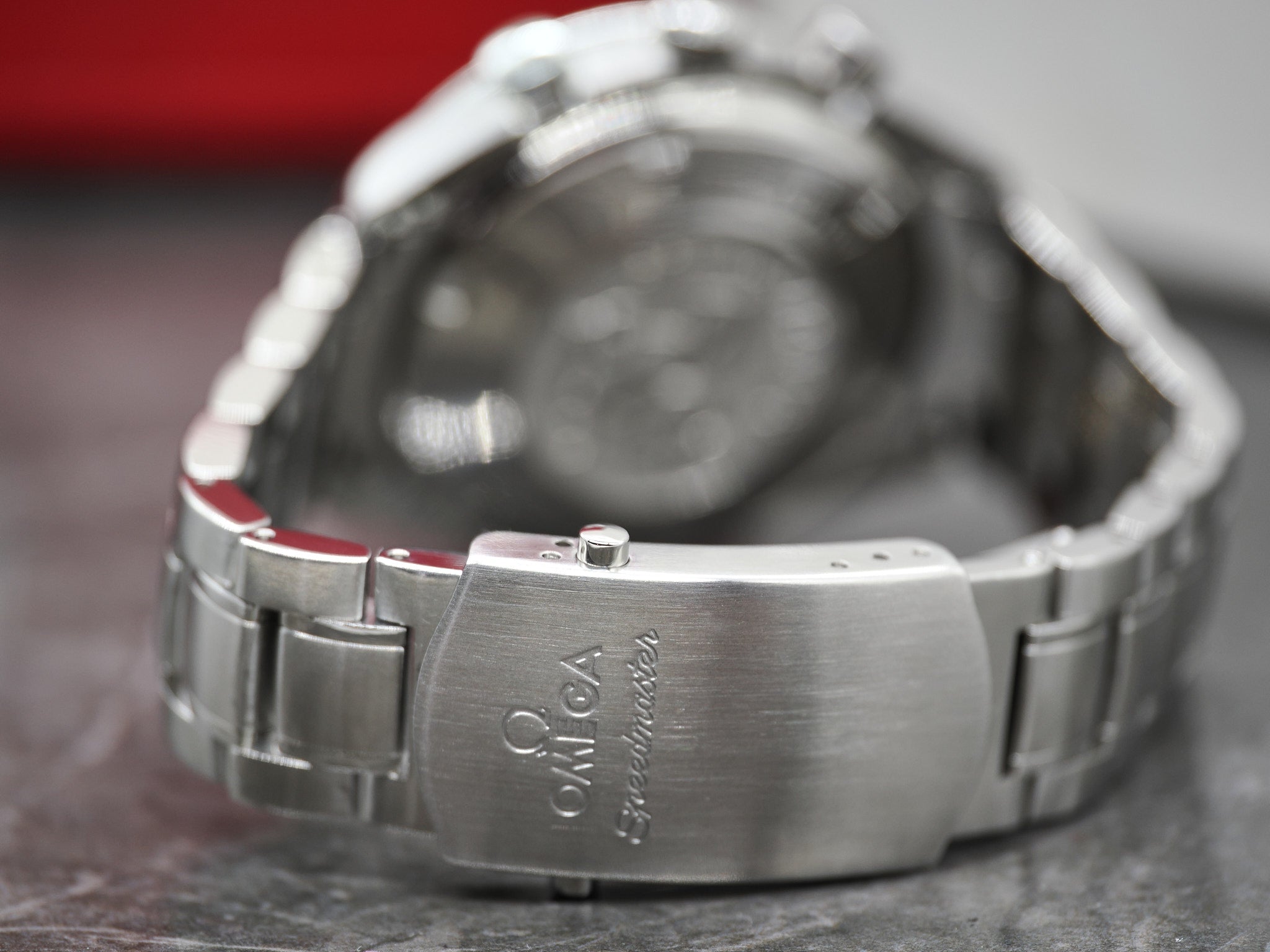 Die Omega Speedmaster Date ist ein perfekter Chronograph für den alltäglichen Bedarf. Das schwarze Ziffernblatt mit eingerahmten Datum und den hochwertigen, aufgesetzten Indizes inkl. Omega Emblem sorgen für einen tollen Charakter, der sowohl edel als sportlich erstrahlt. In der Omega ist das robuste Omega Kaliber 1164 mit einer Gangreserve von 44 Stunden verbaut. Diese Referenz ist im Vergleich zu den 3513xxxx Referenzen 1mm größer, besitzt die Chronometer Zertifizierung und ist zudem bis zu 100 Meter, bei Auslieferung, wasserdicht. Zusätzlich ist die Lünette nicht mehr aus Stahl.